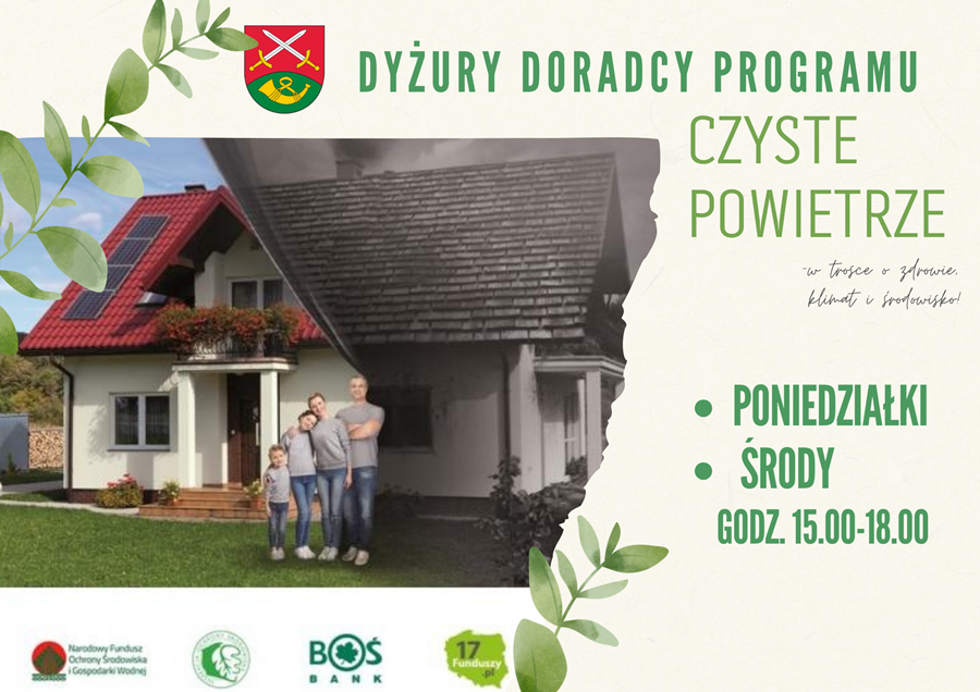 Mieszkańców gminy zainteresowanych Programem "Czyste Powietrze" zapraszamy na konsultacje od 16.08.2021, po uprzednim umówieniu się z doradcą. Zapisu można dokonać telefonicznie: 511 900 353 lub drogą elektroniczną, e-mail: [email protected]