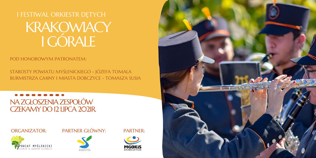 Starosta Powiatu Myślenickiego Józef Tomal oraz Burmistrz Gminy i Miasta Dobczyce Tomasz Suś zapraszają amatorskie orkiestry dęte, do udziału w I Festiwalu Orkiestr Dętych Krakowiacy i Górale, który odbędzie się już we wrześniu w Dobczycach.