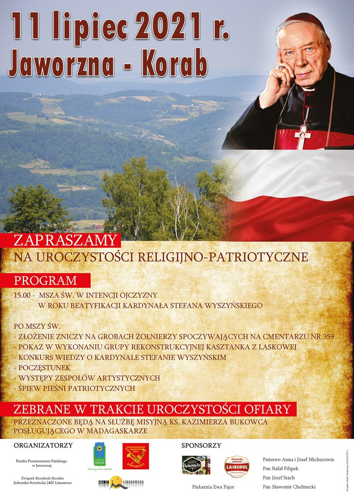 W imieniu organizatorów  zapraszamy na uroczystości patriotyczno religijne na górze Korab – Jaworzna, Gmina Laskowa, które odbędą się w najbliższą w niedzielę, tj. 11 lipca 2021 r.