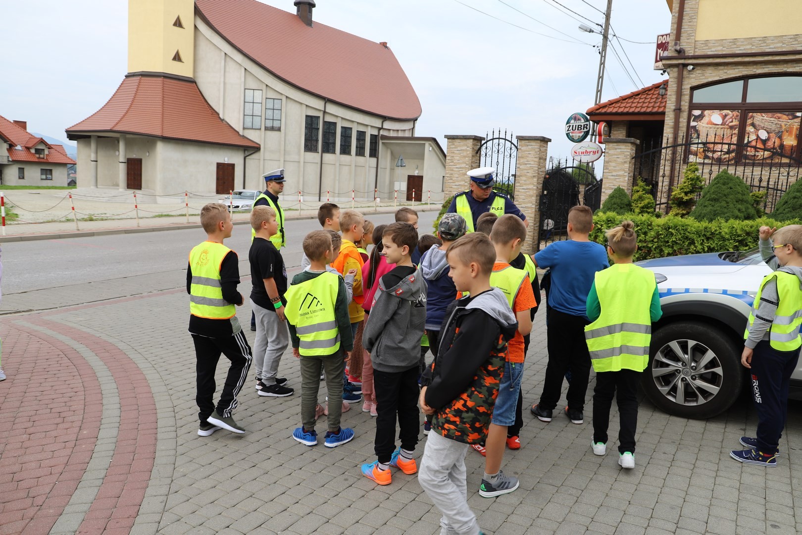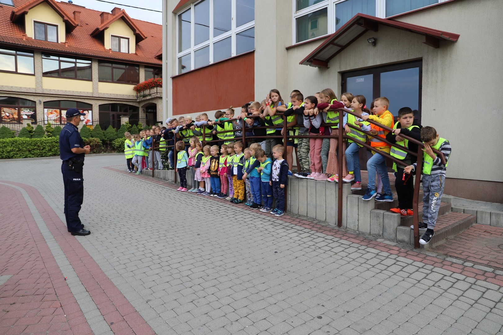 Wrzesień 2021 – powrót dzieci do szkoły po długiej przerwie. Mając na uwadze fakt, iż nasza szkoła zwraca szczególną uwagę na bezpieczeństwo uczniów już od pierwszych dni września podejmujemy działania w tym kierunku. Z tego względu m.in. od lat ściśle współpracujemy ze służbami mundurowymi.
