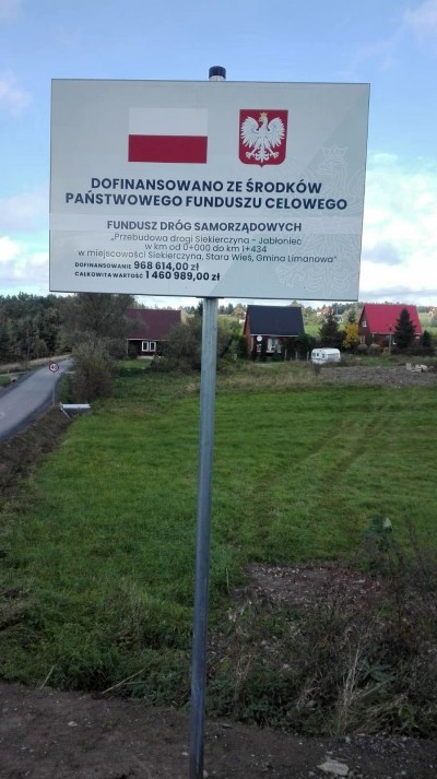 Zakończona została realizacja inwestycji polegającej na przebudowie drogi Siekierczyna - Jabłoniec w km 0+000 – 1+434 w miejscowości Siekierczyna, Stara Wieś, Gmina Limanowa.