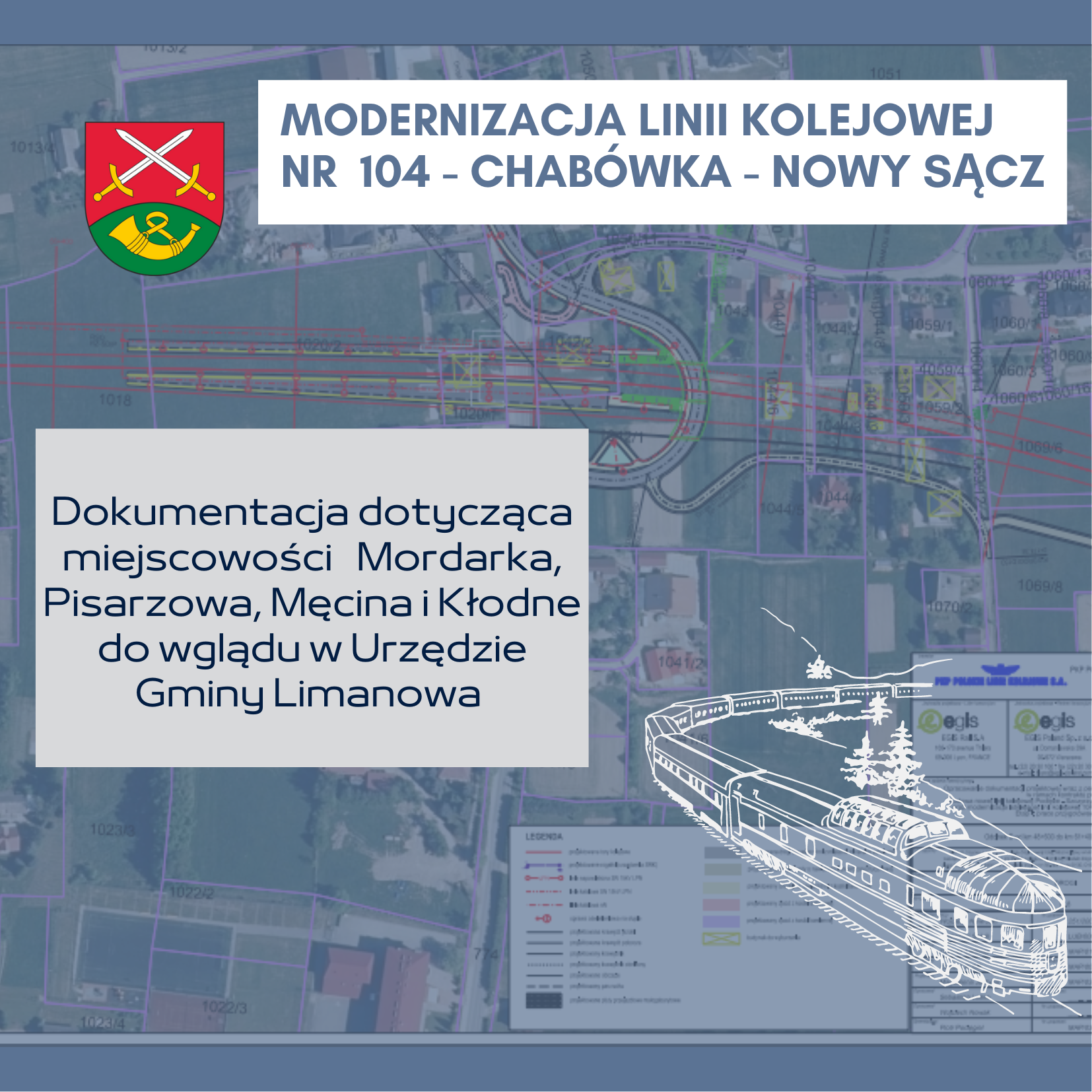 Dokumentacja dot. modernizacji linii kolejowej nr 104 Chabówka – Nowy Sącz w miejscowościach: Mordarka, Pisarzowa, Męcina i Kłodne, przedłożona do Urzędu Gminy Limanowa.