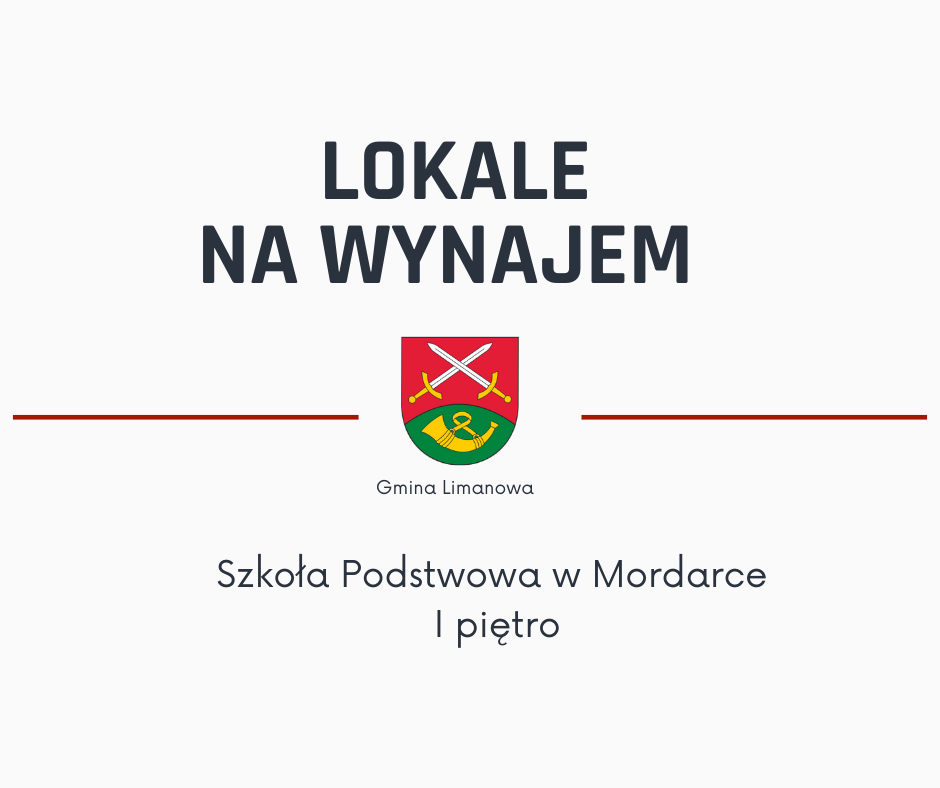 Informujemy, że Gmina Limanowa posiada wolny lokal przeznaczony do wynajmu z przeznaczeniem na prowadzenie sklepiku szkolnego. Łączna powierzchnia pomieszczenia w Szkole Podstawowej w Mordarce przeznaczonych do wynajęcia wynosi 6,0 m2.