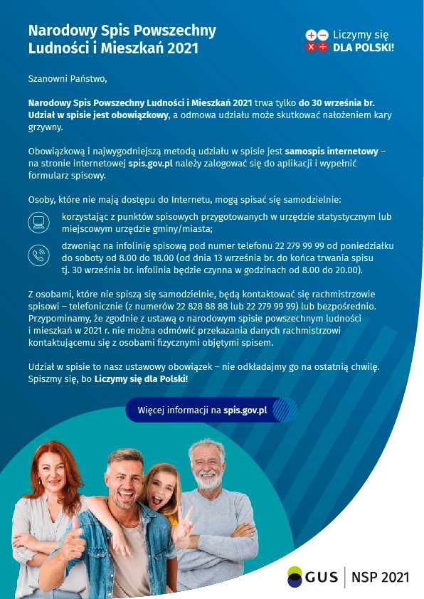 Udział w spisie to nasz ustawowy obowiązek – nie odkładajmy go na ostatnią chwilę.