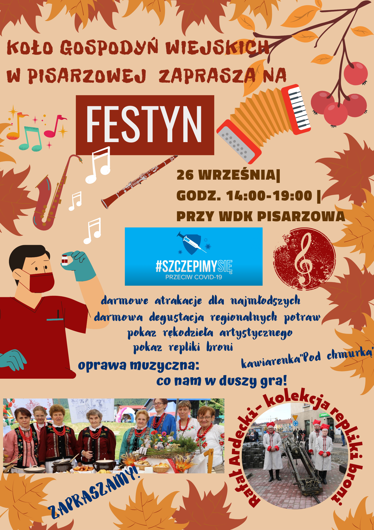 26 września br. w godz. 14.00-19.00 przy budynku Wiejskiego Domu Kultury w Pisarzowej, Koło Gospodyń Wiejskich w Pisarzowej  organizuje festyn rodzinny w ramach akcji #SzczepimySię z KGW.