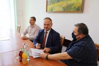 23 września br. w Urzędzie Gminy Limanowa odbyło się spotkanie z przedstawicielami firmy Transwiertel Sp. z o.o., na którym zawarta została umowa na wykonanie I etapu kanalizacji sanitarnej w miejscowości Sowliny i Łososina Górna. Umowę podpisał Wójt Gminy Limanowa Jan Skrzekut oraz przedstawiciele Wykonawcy.