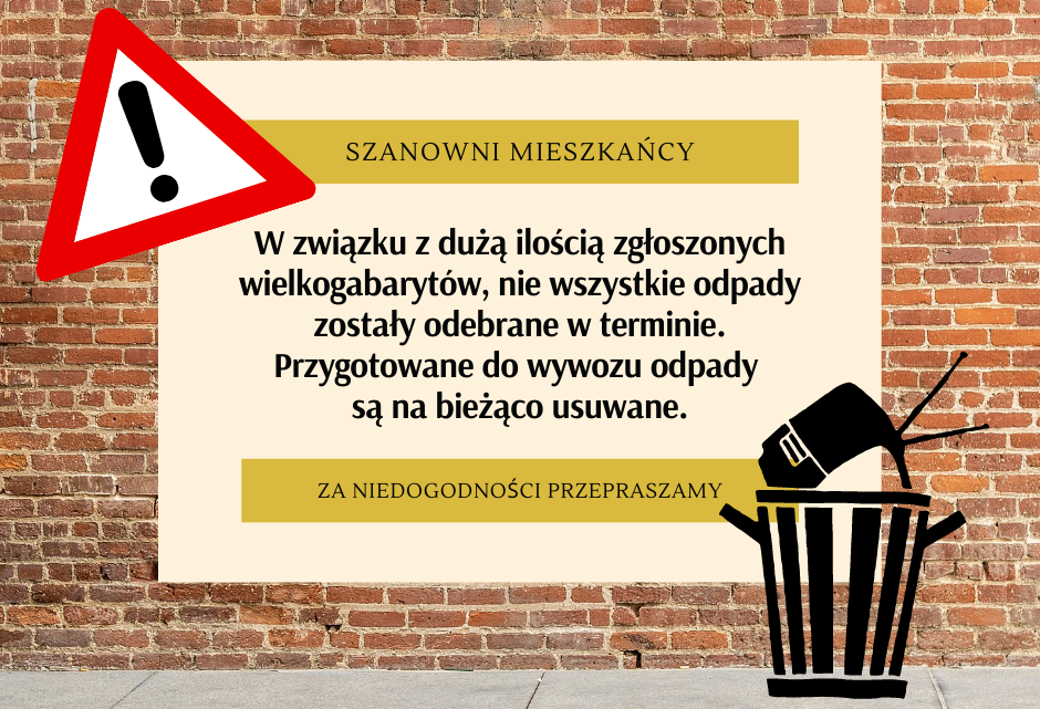 w związku z dużą ilością zgłoszonych wielkogabarytów, nie wszystkie odpady zostały odebrane w terminie. Przygotowane do wywozu odpady są na bieżąco usuwane.