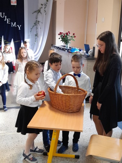 Od tej chwili pierwszoklasistów można oficjalnie wpisać w poczet uczniów naszej szkoły. Liczymy na to, że dotrzymają swoich zobowiązań i będą dbać o dobre imię klasy i szkoły. Starsi koledzy, w imieniu których do pierwszaków zwróciły się uczennice z kl. VII, będą ich wspierać, służyć radą i pomocą, aby szkolna rzeczywistość nie była dla nich szara i smutna, lecz barwna i wesoła.