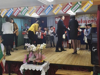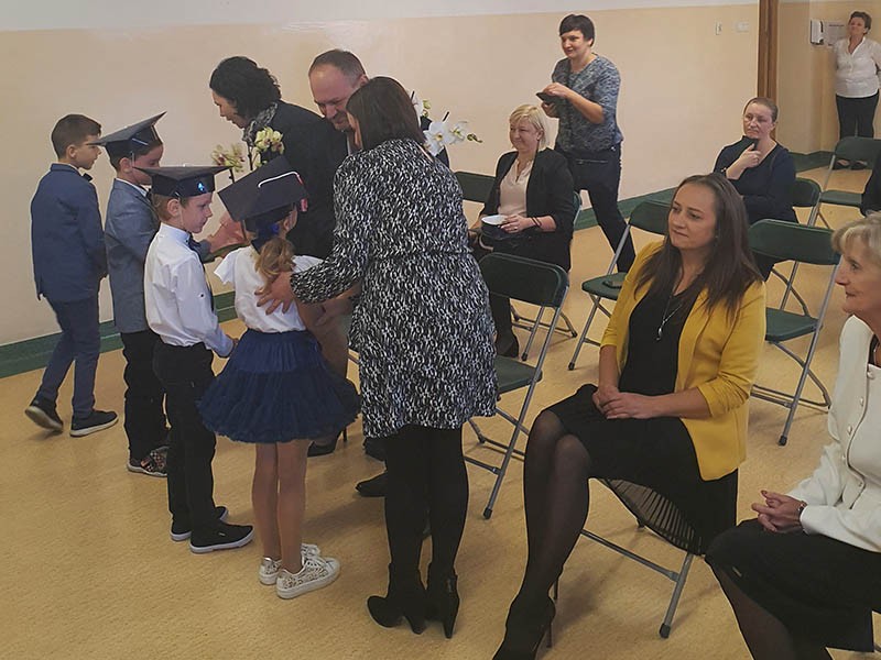 Pan Wójt i Pani Dyrektor skierowali do uczniów i ich rodziców wiele ciepłych słów składając wszystkim najserdeczniejsze życzenia. Dzieci otrzymały wiele podarunków od Przedstawicieli Gminy Limanowa, Rodziców, Rady Rodziców, Dyrektora i Wychowawcy klasy.