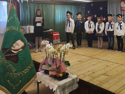 14 października 2021 r. w Dzień Edukacji Narodowej odbyło się w naszej szkole ślubowanie uczniów klasy pierwszej. Uroczystość tak ważną w życiu każdego pierwszoklasisty, ich rodziców oraz całej społeczności szkolnej uświetnili swoją obecnością Wójt Gminy Limanowa Pan Jan Skrzekut, Dyrektor Gminnego Zespołu Obsługi Szkół w Limanowej Pani Edyta Król, Ks. Proboszcz Kazimierz Matusik, Przewodnicząca Rady Rodziców Pani Agnieszka Król.