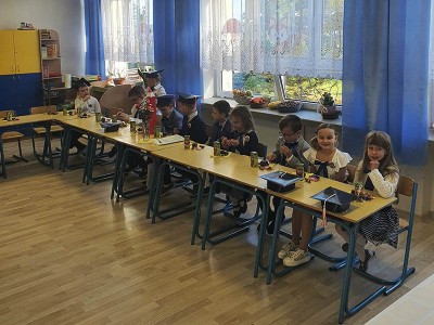 Na zakończenie uroczystości wszyscy udali się przed budynek szkoły, aby dokonać symbolicznego gestu pomocy potrzebującym i niepełnosprawnym, wrzucając zgromadzone nakrętki do ustawionego „SERCA”. Uwieńczeniem uroczystości była wspólna fotografia i słodki poczęstunek przygotowany przez rodziców.