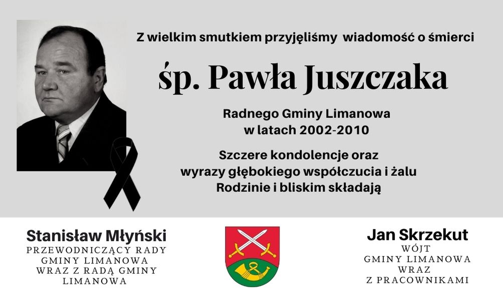 Szczere kondolencje oraz wyrazy głębokiego współczucia i żalu rodzinie i bliskim składają Władze Gminy Limanowa.