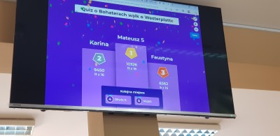 Autorem quizu o Bohaterach Westerplatte jest uczeń klasy VIIIA Jakub Postrożny. Jakub zaprosił do gry kolegów z klasy IV-VIII przed telebim, gdzie uczniowie łącząc się przez szkolne WiFi mieli możliwość sprawdzić swoje wiadomości na temat naszych bohaterów. Zwycięzcy pierwszej rundy z wysokim wynikiem w poszczególnych klasach rozegrają między sobą jeszcze jedną grę. Co ciekawe do kolejnej rundy Jakub napisał już nowy quiz, by pytania nie były takie same.
