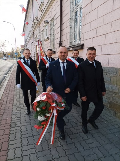 Delegacja Władz Gminy Limanowa upamiętniająca rocznicę w Limanowej: Wójt Gminy Limanowa Jan Skrzekut, Przewodniczący Rady Gminy Limanowa Stanisław Młyński.