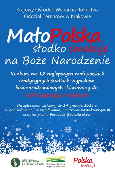 [email protected] podając w tytule maila: KONKURS – „MałoPolska słodko smakuje na Boże Narodzenie”