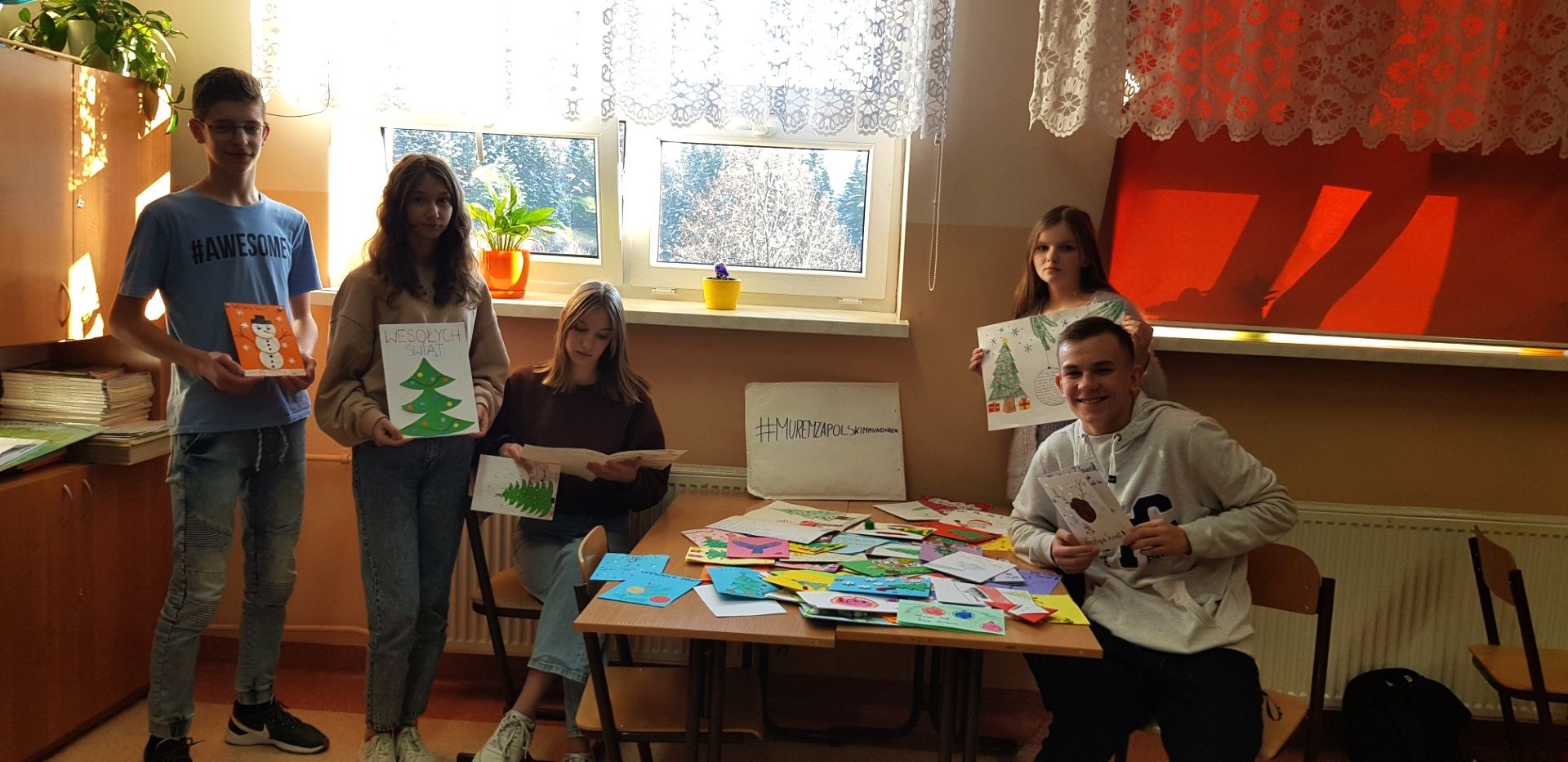 Uczniowie ze Szkoły Podstawowej Nr 1 w Starej Wsi również przyłączyli się do ogólnopolskiej akcji #MuremZaPolskimMundurem wysyłając kartki świąteczne z życzeniami dla żołnierzy.