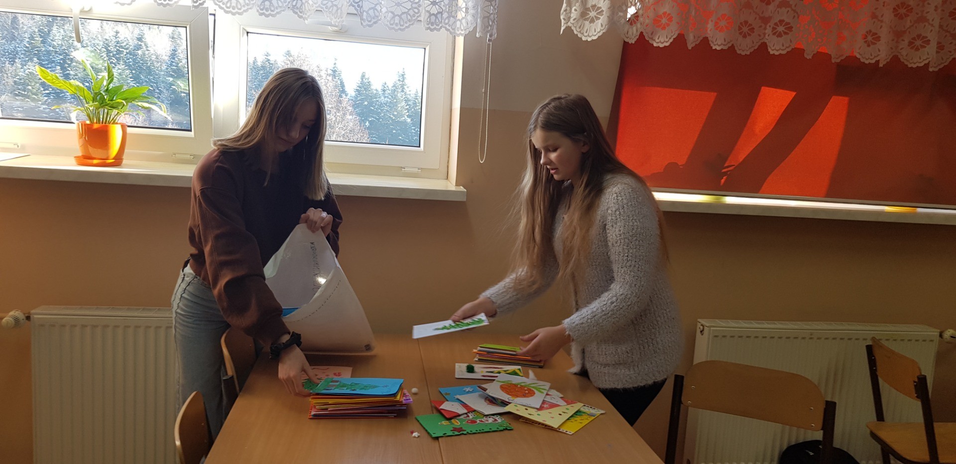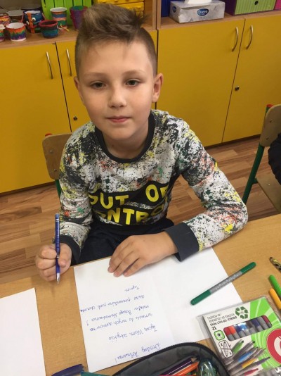 Młodsi i starsi uczniowie rysowali kartki oraz pisali piękne od serca płynące życzenia. W ten prosty sposób pragną wyrazić wdzięczność naszym polskim żołnierzom, policjantom, straży granicznej, żołnierzom wojsk obrony terytorialnej oraz leśnikom, za ich trud, który wkładają każdego dnia, narażając swoje życie, by bronić granic naszego państwa polskiego.