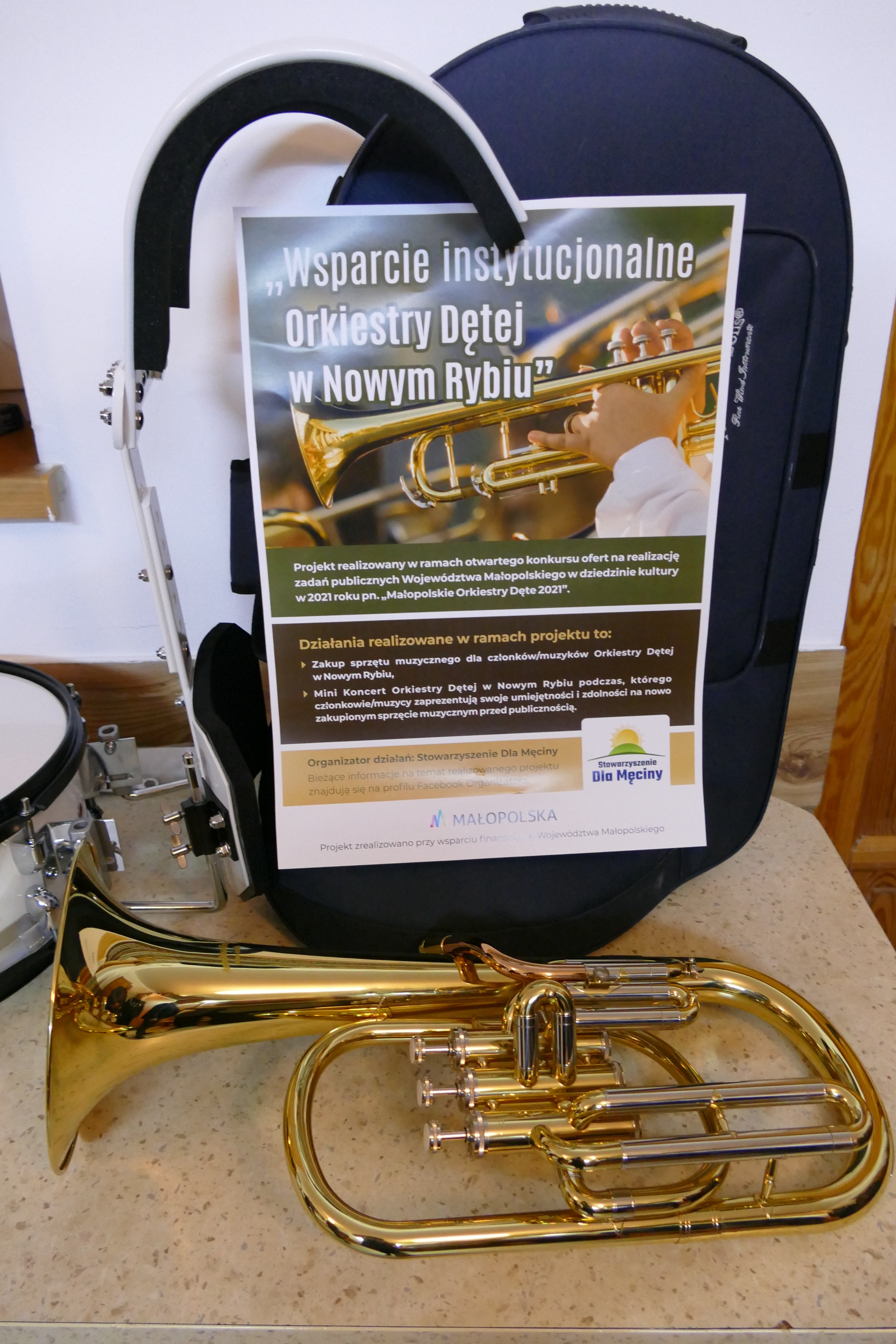 W ramach zrealizowanego działania Stowarzyszenie Dla Męciny zakupiło dla Orkiestry Dętej w Nowym Rybiu sprzęt muzyczny w postaci instrumentów takich jak: sakshorn altowy Es – 2 sztuki, werbel marszowy z nosidłem, bęben marszowy z pałką i nosidłem oraz talerze marszowe „14”. Ponadto zostało zorganizowane wydarzenie związane z rozwojem i popularyzacją działalności Orkiestry tj. Mini Koncert, podczas którego oficjalnie Przedstawiciele Stowarzyszenia Dla Męciny w osobach: Iwona Kuzak – Prezes oraz Stanisław Smoleń i Józef Oleksy – Członkowie organizacji, dokonali uroczystego przekazania zakupionego sprzętu muzycznego na ręce Członków Orkiestry Dętej w Nowym Rybiu oraz Przewodniczącego Rady Gminy Limanowa – Stanisława Młyńskiego.