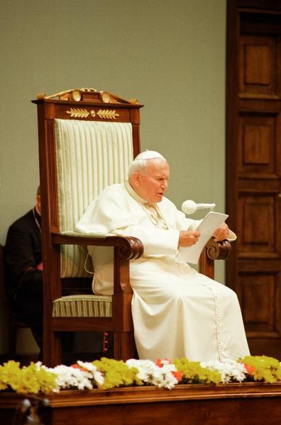 16 października 1978 r. Kardynał Karol Wojtyła został wybrany na Papieża. Przyjął imię Jan Paweł II. Papież Polak otworzył Watykan dla ludzi i sam do nich wychodził. Odbył tysiące środowych audiencji generalnych w Rzymie oraz 104 podróże apostolskie w różne zakątki świata. Angażował się również jako mediator w sprawy polityczne i społeczne. Pozostawił po sobie wielką spuściznę intelektualną w postaci encyklik, listów apostolskich oraz książek. Był kochany przez wszystkich, w szczególności przez młodzież. Dał świadectwo cierpienia, 13 maja 1981 r. przeżył zamach na swoje życie, z którego ocalał – sam wielokrotnie podkreślał dzięki Matce Bożej Fatimskiej. Mimo postępującej choroby niestrudzenie przewodził chrześcijanom. Zmarł 2 kwietnia 2005 r. w Rzymie.