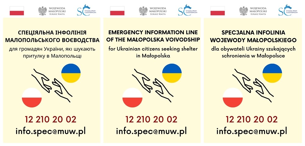 W związku z trwającym konfliktem zbrojnym na Ukrainie udostępniamy aktualne informacje na temat działań podejmowanych przez Wojewodę Małopolskiego Łukasza Kmitę mające na celu zapewnienie bezpieczeństwa uchodźcom z obszarów ogarniętych wojną: