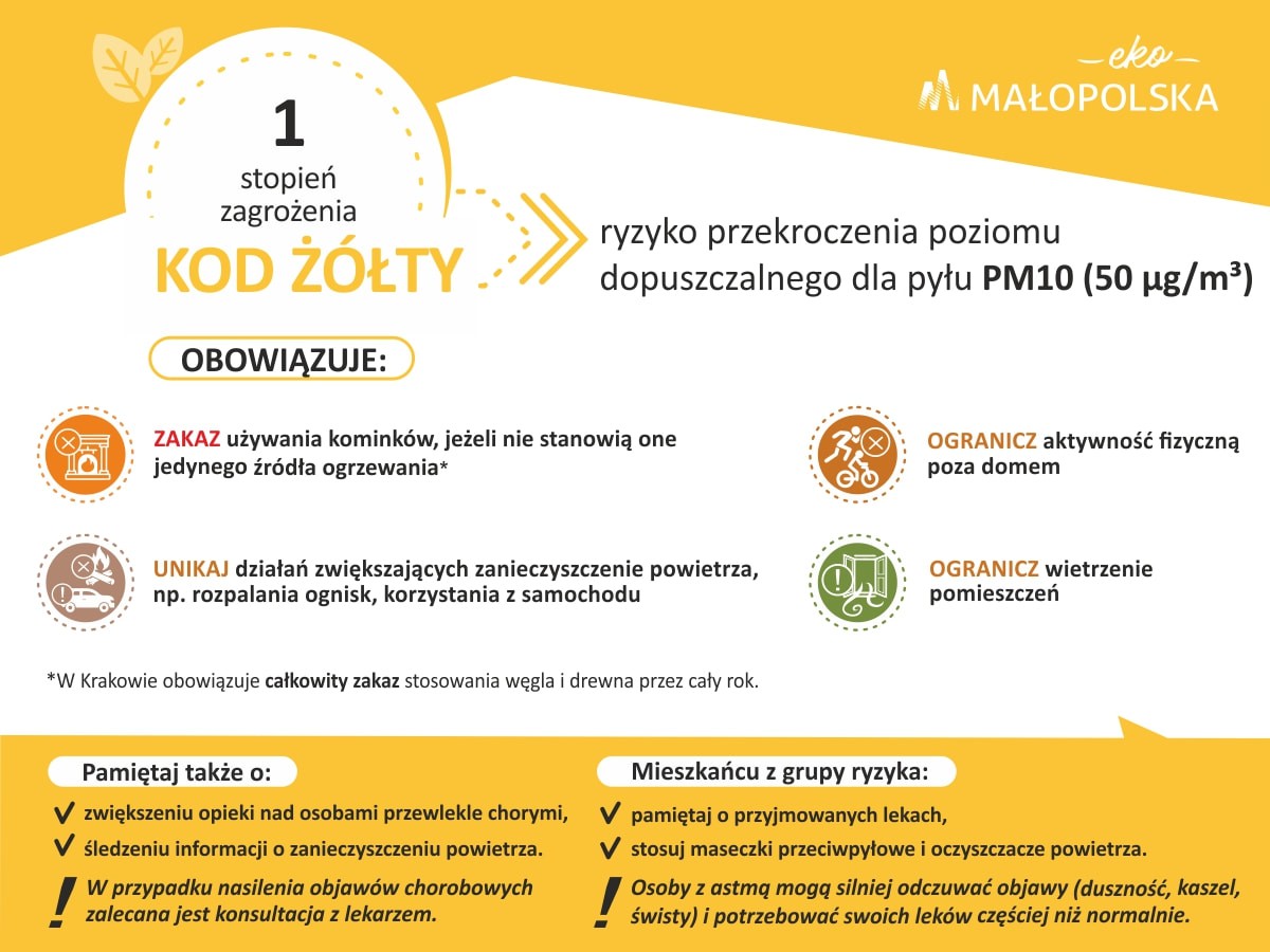 Ostrzeżenie o ryzyku przekroczenia poziomu dopuszczalnego pyłu PM10 ze względu na zwiększoną emisję zanieczyszczeń oraz niekorzystne warunki meteorologiczne.