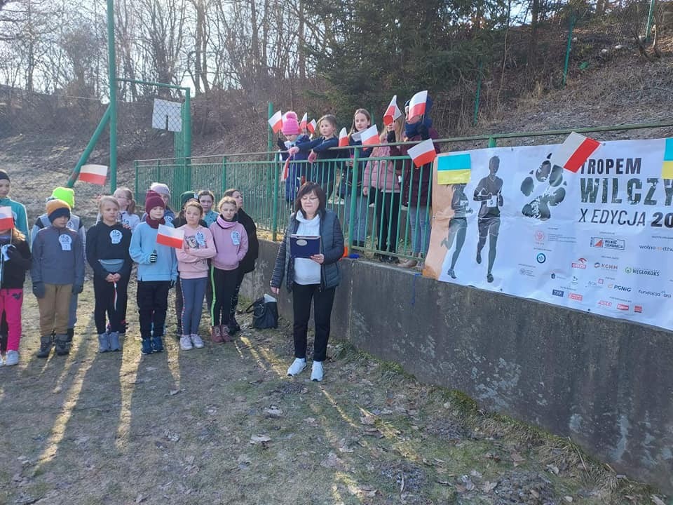 W ramach jego X edycji skorzystaliśmy z zaproszenia skierowanego do szkół.Przygotowywanyprzez nauczycieli historii i wychowania fizycznego z wielkim zaangażowaniem od stycznia bieg Tropem Wilczym – udał się znakomicie. Ogromna liczba młodzieży zgłosiła się do biegu, a ich wytrwałość w pokonaniu dystansu 1963 m. przyczyniła się do kształtowania świadomej pamięci historycznej. Została ona zapamiętana nie tylko przez ból mięśni po pokonanym dystansie , ale również poprzez realizację zajęć prezentujących historię Żołnierzy Wyklętych. Dystans biegu odwoływał się do daty schwytania i zamordowania ostatniego „leśnego” żołnierza – Józefa Franczaka pseudonim „Laluś”, który prze 18 lat walczył, ukrywając się przed „ubekami”