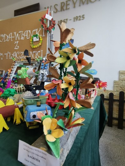 Na konkurs wpłynęło kilkadziesiąt prac. Pomysłowość uczestników konkursu oraz dokładność w dopracowaniu detali zadziwiła jury, które po długich obradach przyznało uczestnikom NAGRODY, WYRÓŻNIENIA oraz dyplomy i upominki ZA UDZIAŁ. Wśród nagrodzonych prac znalazły się makiety gospodarstw, lasów i oceanów, roboty, motyle, owoce. Nie zabrakło wytłaczakowej Elsy oraz pirackiego okrętu o nazwie Czarna Perła. Wśród nagrodzonych prac znalazły się także torebki damskie, ramki na zdjęcia i lampki nocne. Wszystkim uczestnikom serdecznie gratulujemy kreatywności i pięknych wykonań.