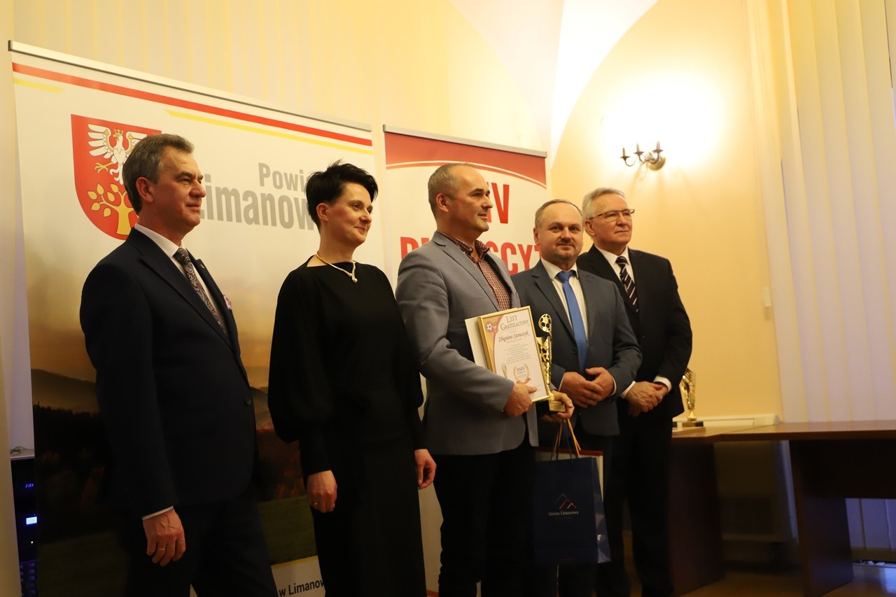 Za wybitne Zasługi na rzecz rozwoju i popularyzacji piłki nożnej na terenie Ziemi Limanowskiej przyznano wyróżnienia dla: