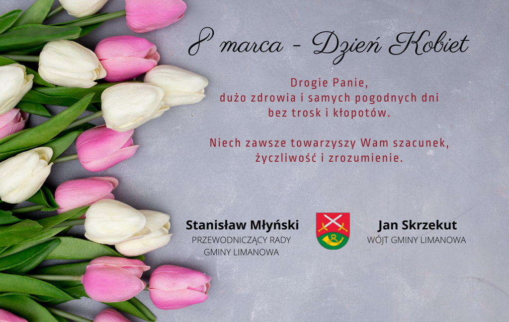 Życzenia od władz gminy Limanowa z okazji 8 marca – Dnia Kobiet.