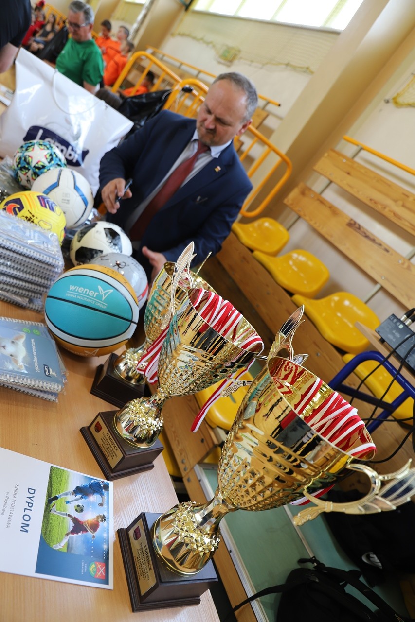 Wręczenia nagród oraz pucharów uczestnikom rozgrywek piłkarskich dokonał Wójt Gminy Limanowa Jan Skrzekut oraz Dyrektor Szkoły Podstawowej w Rupniowie Robert Piwowarczyk.