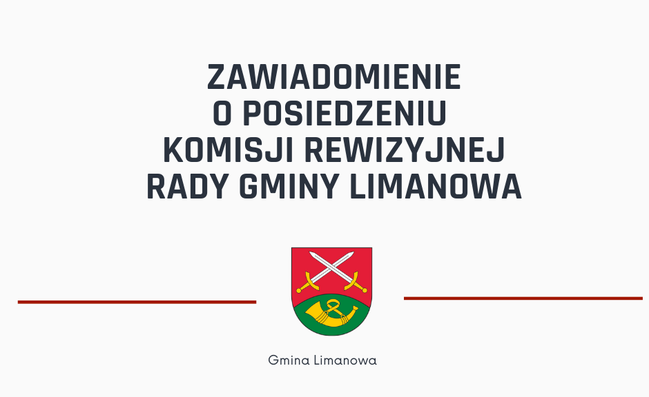 Na podstawie § 60 ust. 3 uchwały Nr XXIX/278/2018 Rady Gminy Limanowa z dnia 6 września 2018 r. w sprawie Statutu Gminy Limanowa (Dz. Urz. Woj. Mał. z 2018 r. poz. 6395) zapraszam na posiedzenie Komisji Rewizyjnej Rady Gminy Limanowa, które odbędzie się w dniu 8 czerwca 2022 r. /środa/ o godz. 13.00 w sali konferencyjnej Urzędu Gminy Limanowa.