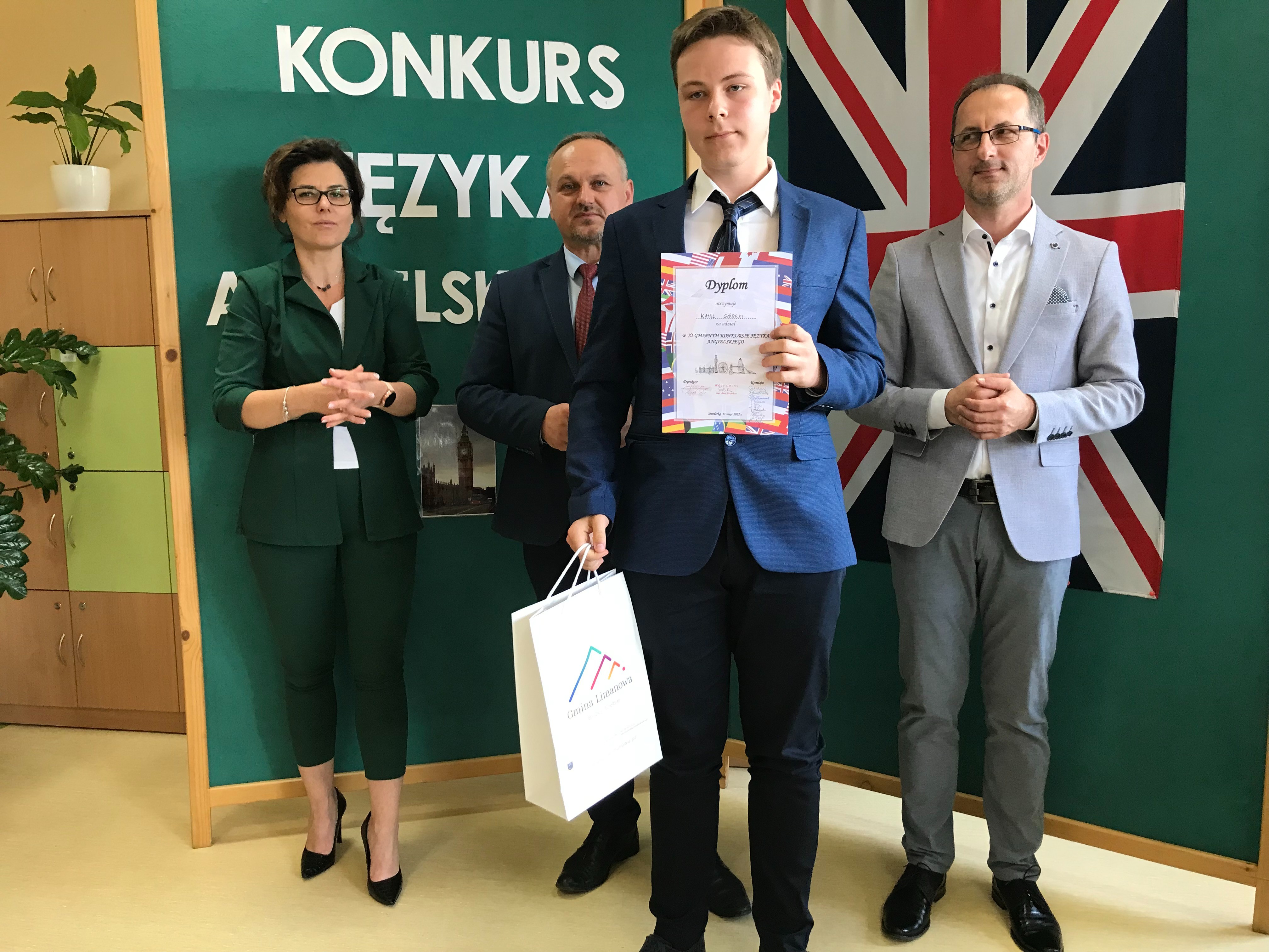W uroczystości podsumowania konkursu i wręczenia nagród uczestniczyli Wójt Gminy Limanowa Jan Skrzekut, Dyrektor Gminnego Zespołu Obsługi Szkół w Limanowej Edyta Król oraz Dyrektor Szkoły Podstawowej w Mordarce Paweł Ciuła.