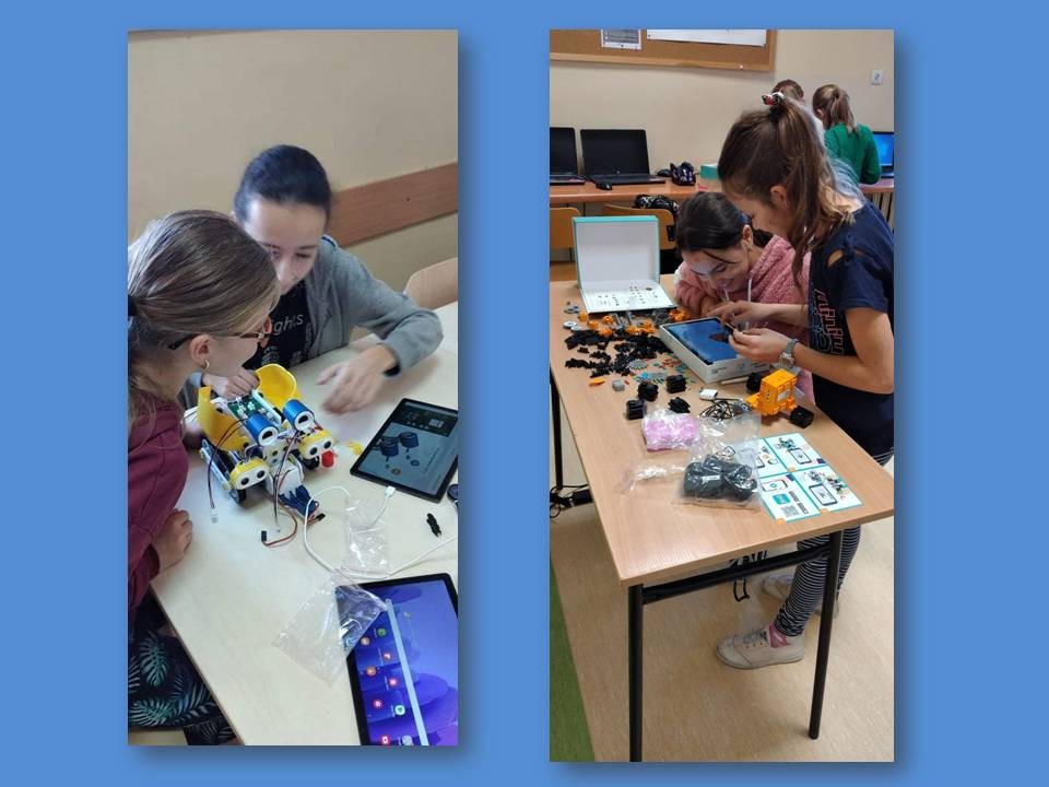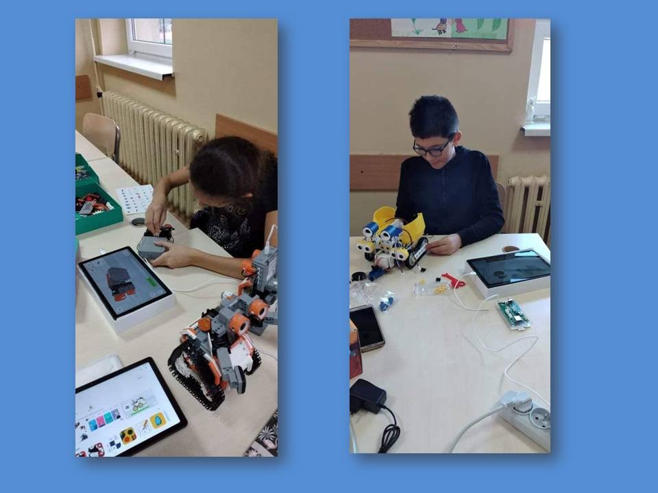 Uczniowie rozpoczęli od przygotowania sprzętu – tabletu, na który została pobrana aplikacja, dzięki której można było korzystać z animowanej instrukcji 3D. Następnie przy pomocy instrukcji zbudowali różne modele robotów: Skriboty marki Skriware oraz Tankboty, AstroBot, Astron, Rover, GrabberBot marki JIMU. W trakcie montażu robotów, uczniowie zdobywali wiedzę z zakresu podstaw mechaniki i elektroniki. Po stworzeniu robotów uczniowie uczyli się nimi sterować zdalnie przy pomocy kontrolera lub zaprogramowanych dla nich własnych ruchów w języku Scratch. Wyzwaniem było zaprogramowanie trasy robotów na dostępnych matach miejskich.