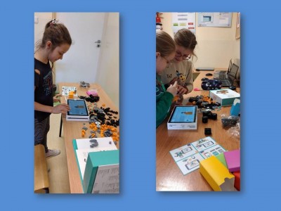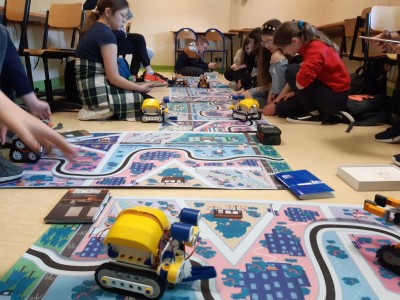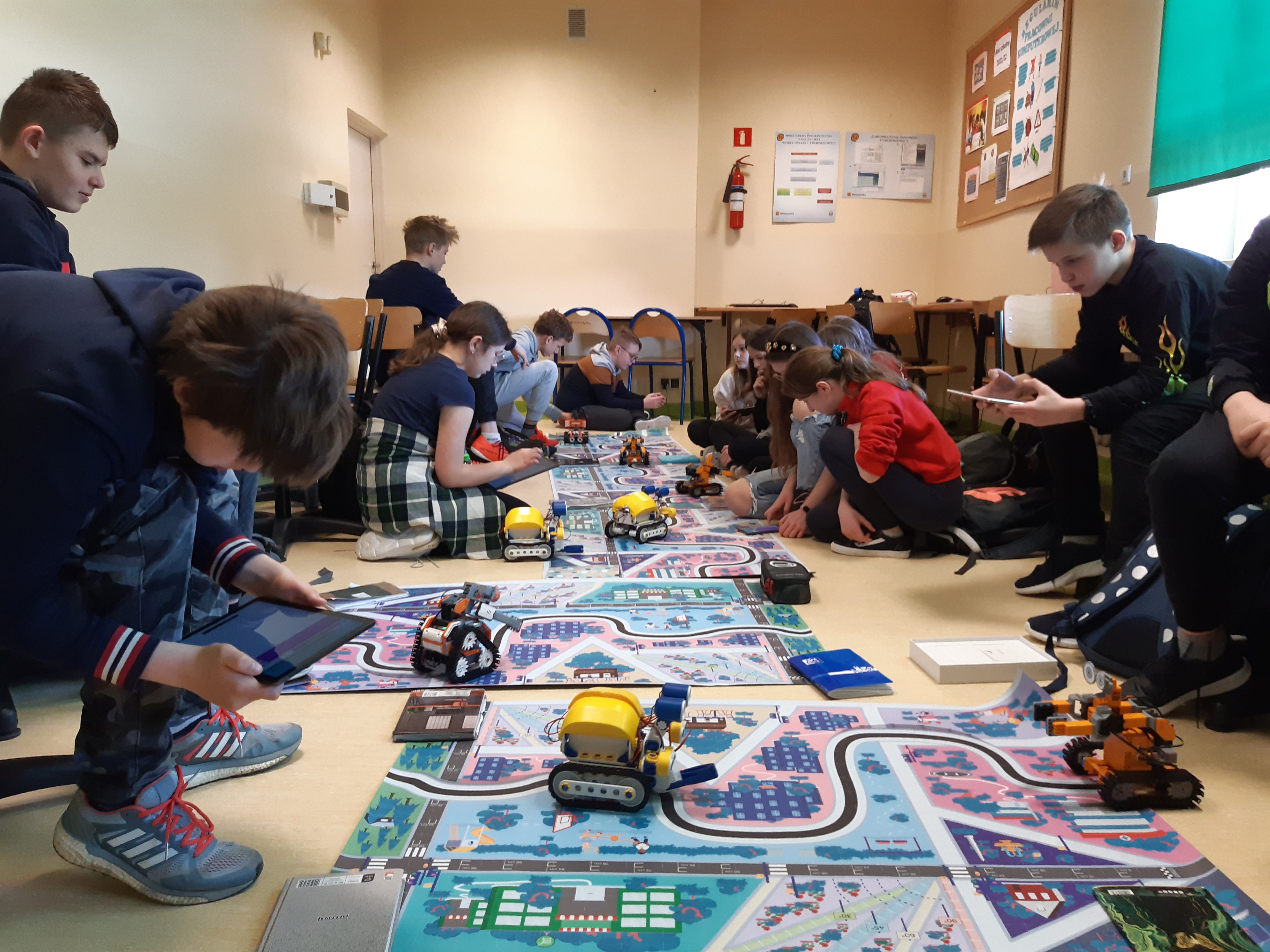 Dzięki sprzętowi zakupionemu w ramach grantu „Modelowej Szkoły” projektu HUMINE czwartoklasiści, szóstoklasiści i siódmoklasiści pod opieką pani mgr Grażyny Kunickiej i pani mgr Małgorzaty Warzechy uczyli się, jak zaprogramować roboty.