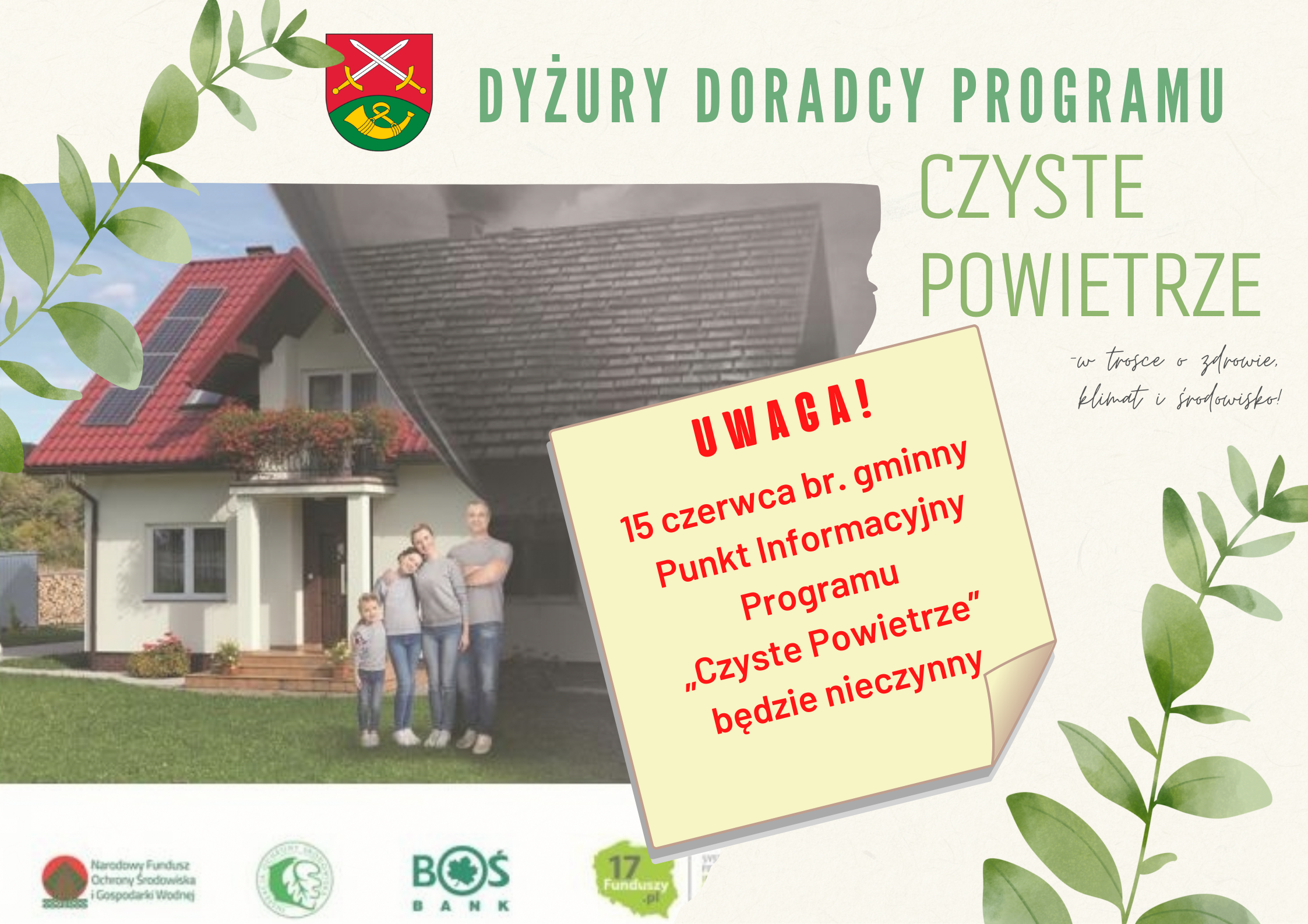 15 czerwca br. gminny Punkt Informacyjny Programu „Czyste Powietrze” będzie nieczynny