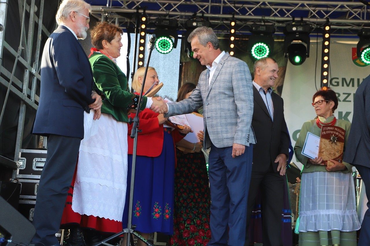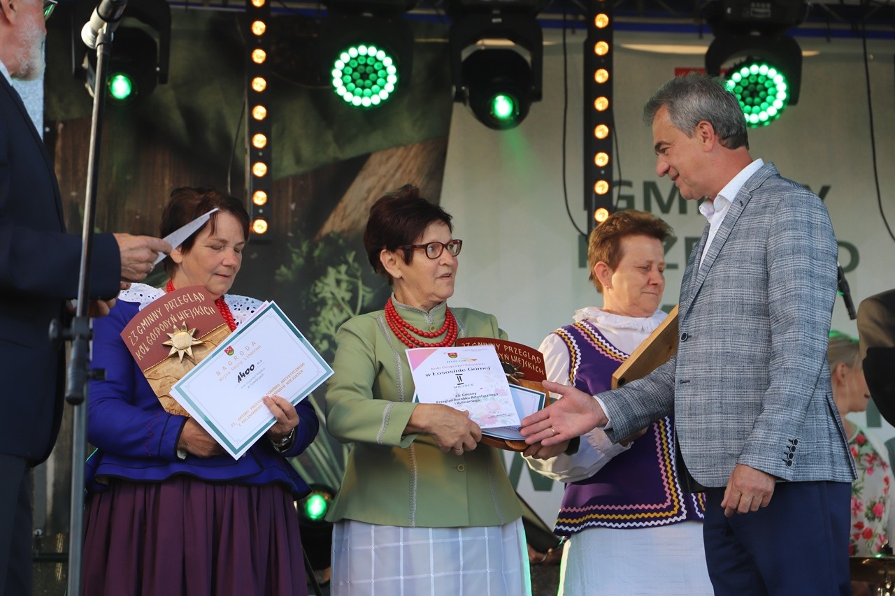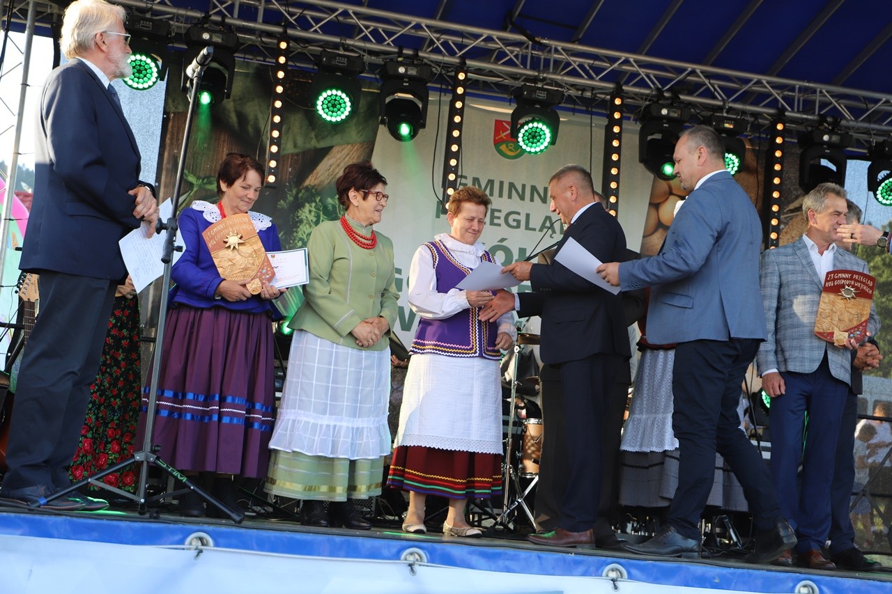 Występujące w Przeglądzie koła nagrodzone zostały okolicznościowymi dyplomami, pamiątkowymi rzeźbami i symbolicznymi czekami, które odebrały Przewodniczące poszczególnych Kół Gospodyń z rąk władz samorządowych.
