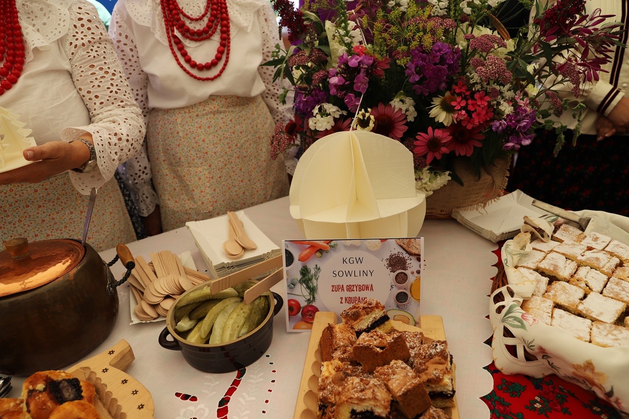 zupa grzybowa z krupami, tradycyjna grochówka, kwaśnica z łopiekonymi zimniokomi, trzęsionka, pierogi z kapustą, kapusta z kiszką, rosół z królika z zimniokomi i miontką. Jednak poza potrawami zgłoszonymi do konkursu, na stoiskach przygotowanych przez członkinie poszczególnych kół nie zabrakło słodkich tradycyjnych wypieków czy wiejskiego chleba ze smalcem i ogórkiem kiszony oraz innych regionalnych przysmaków, którymi można było się poczęstować.