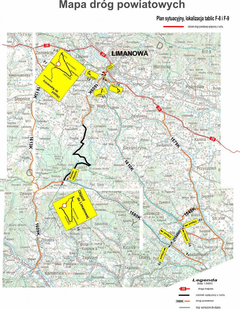 Droga zostanie zamknięta na odcinku Limanowa skrzyżowanie drogi „Limanowa-Kamienica” – „Stara Wieś-Stara Wieś Wola” do skrzyżowania dróg K1609 Limanowa-Kamienica z K1610 Wierzyczka-Jastrzębie.