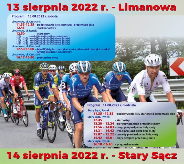 W godz. 11.35- 12.35 przy ul. Br. Czecha (przy Limanowskim Domu Kultury) będzie mieć miejsce prezentacja ekip kolarskich, natomiast o godz. 12.45 odbędzie się Start Honorowy.