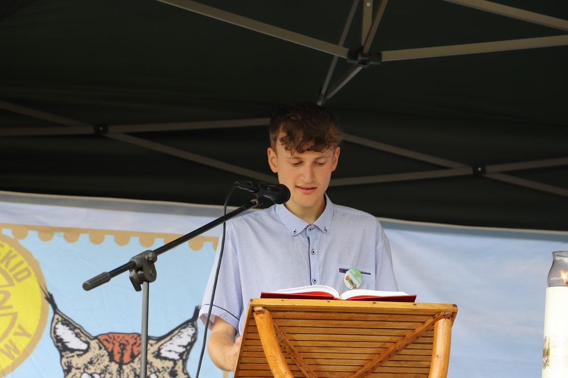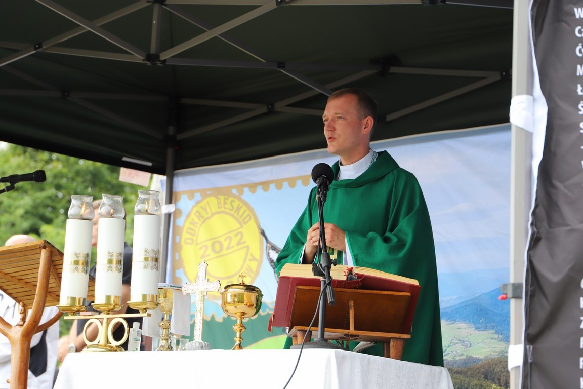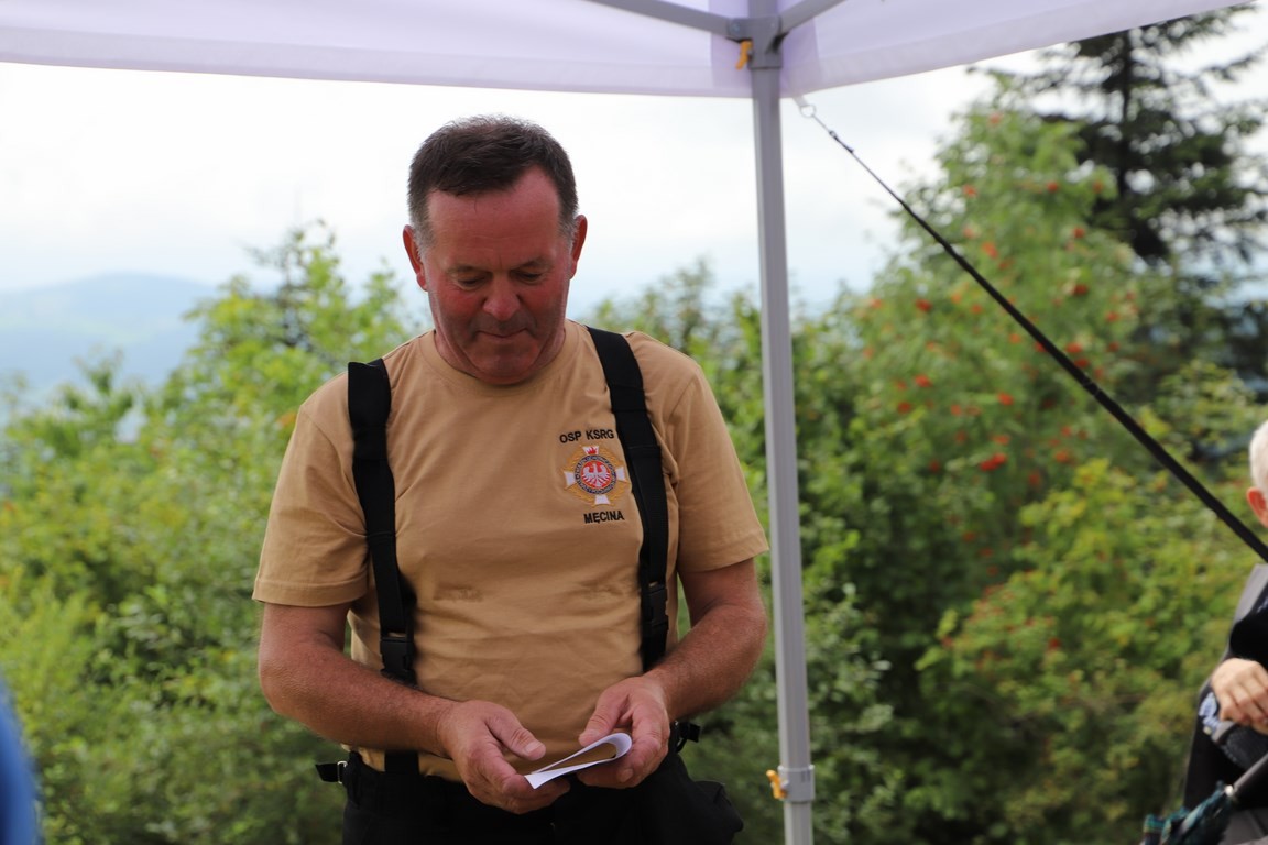 Po oficjalnym przywitaniu u podnóży góry gdzie wzniesiona jest wieża widokowa, ksiądz