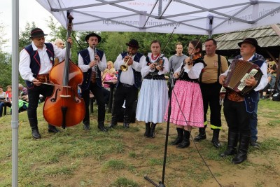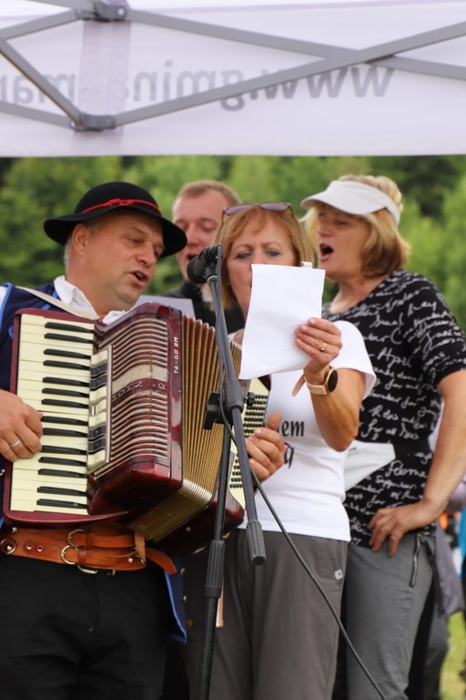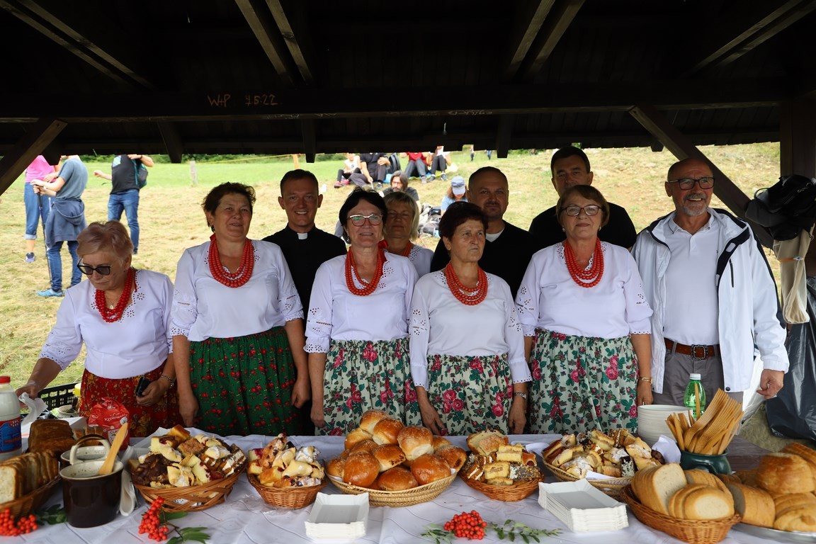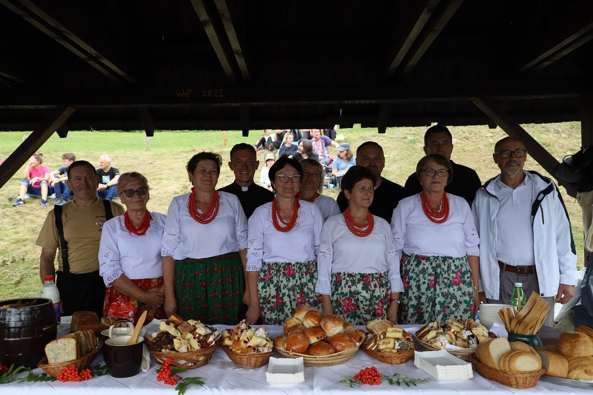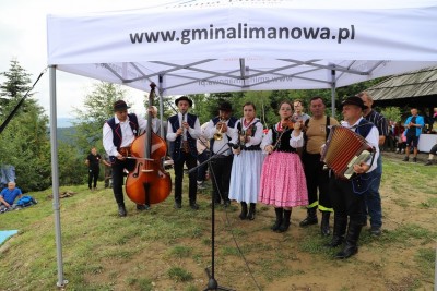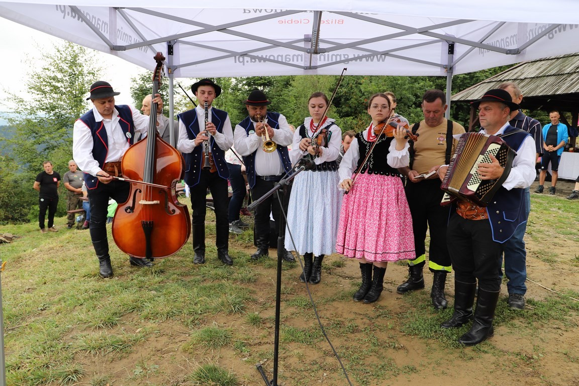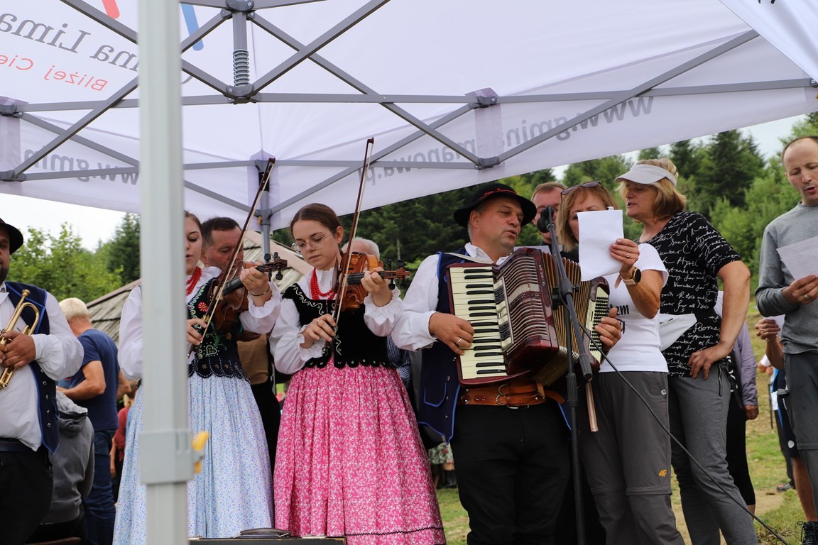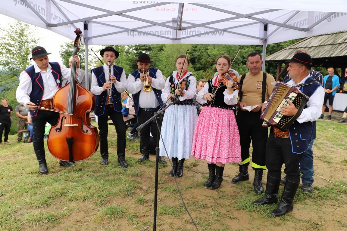 Muzyka góralska i biesiadna w wykonaniu kapeli towarzyszyła turystom również podczas dalszej części spotkania - konkursów oraz wspólnego poczęstunku przygotowanego przez członkinie