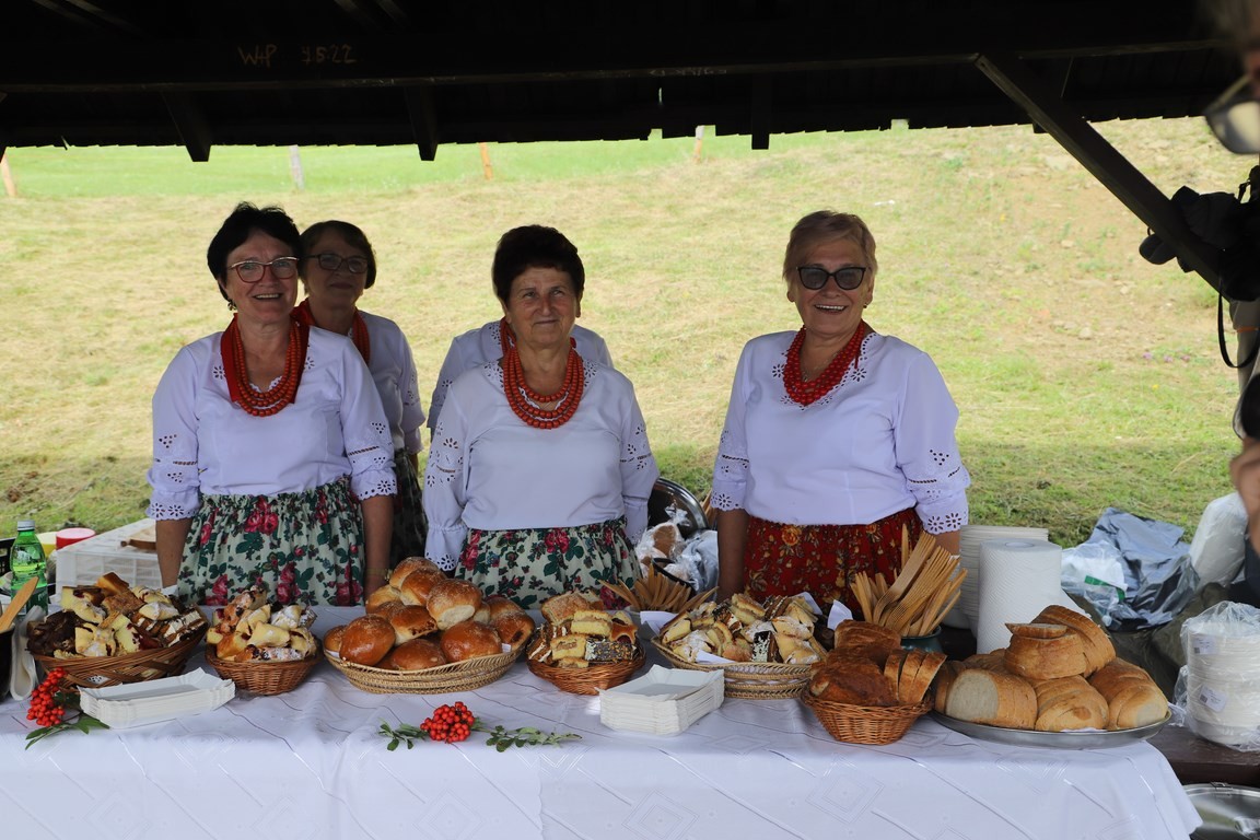 Koła Gospodyń Wiejskich w Męcinie. Oprócz ciepłego posiłku jakim był kapuśniak i można było skosztować także chleba ze smalcem i ogórkiem kiszonym oraz mnóstwo słodkich wypieków.