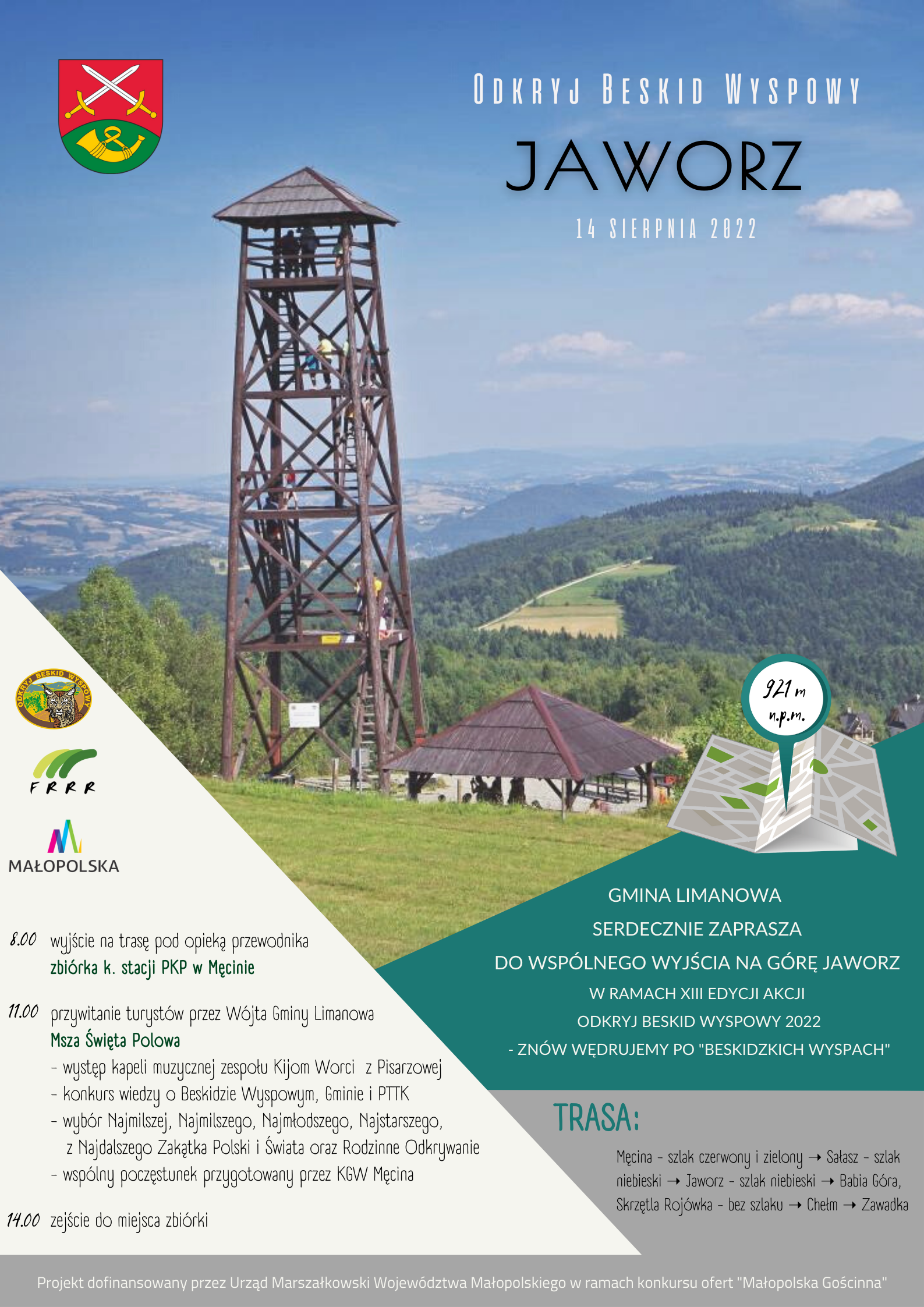 Zapraszamy na pieszą wędrówkę na górę Jaworz, która odbędzie się już 14 sierpnia br. (niedziela). Wyprawa organizowana jest w ramach XIII edycji akcji Odkryj Beskid Wyspowy 2022 – znów wędrujemy po „Beskidzkich Wyspach”, przez Gminę Limanowa.