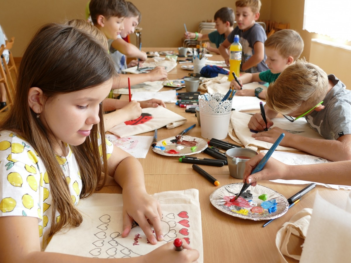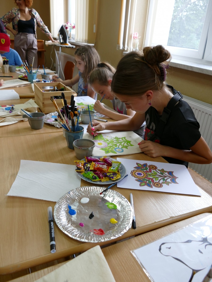 Warsztaty artystyczne były dopełnieniem warsztatów aktorskich, podczas których słuchacze poznawali literacką twórczość Konopnickiej. Natomiast inspiracją do dekoracji toreb i koszulek, były ilustracje i postacie z utworów Marii Konopnickiej, o którą oparty jest realizowany projekt. Przewodniczką w świecie ilustracji i zdobień była Monika Zielińska – Klimczak z Pracowni Rękodzieła ManuCraftura z Nowego Sącza. Dzieci korzystały z gotowych szablonów lub realizowały własne, twórcze pomysły. Wśród ozdób królowały zwierzęta, ale nie zabrakło też dekoracji inspirowanych folklorem i ludowością. Powodzeniem cieszyły się też ornamenty. Po skończeniu malowania, dzieci z dumą prezentowały swoje artystyczne dzieła. Warsztaty dostarczyły uczestnikom niezapomnianej frajdy, pobudziły kreatywność, koncentrację i dostarczyły radości z rzeczy wykonanych własnoręcznie.
