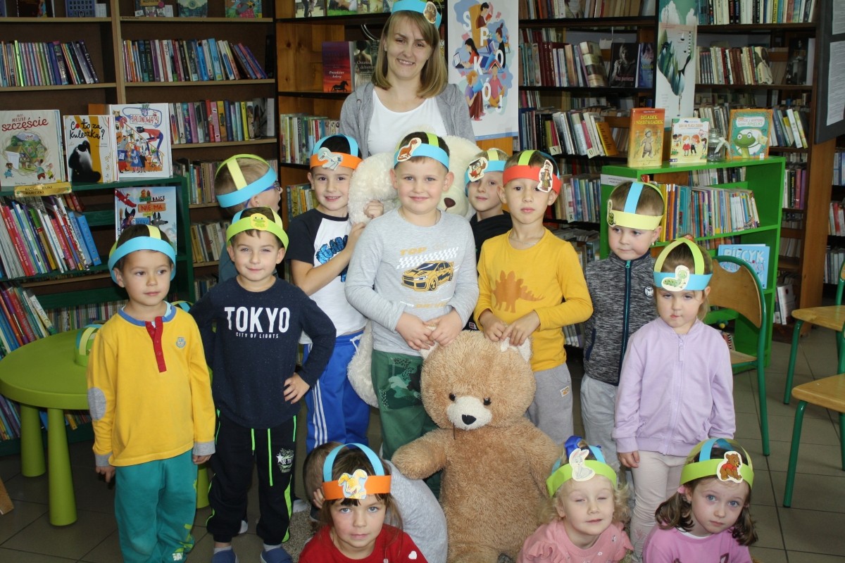 Bibliotekę w Kaninie odwiedziły dzieci z oddziałów przedszkolnych wraz ze swoimi wychowawczyniami Alicją Sławek i Katarzyną Ziają. Z racji dzisiejszego święta, na dzieci czekał pewien wyjątkowy Miś i jego tata - Tata Niedźwiadek. Niedźwiadki chciały bowiem Nam zdradzić sekret na udany dzień. Tata Miś powiedział, że wystarczy się mocno do kogoś przytulić, a świat stanie się piękniejszy. I tak zaczęła się Nasza niezwykła przygoda. Wraz z Niedźwiadki powędrowaliśmy razem przez las i przytulaliśmy każdego, kogo spotkaliśmy na naszej drodze - malutką Gąsienicę, wielką Anakondę, a nawet Myśliwego ze strzelbą w dłoni...Pełna humoru a zarazem wzruszająca opowieść o tym, że jeden mały, ale płynący z głębi serca gest, może zmienić bardzo wiele w życiu każdego z nas.