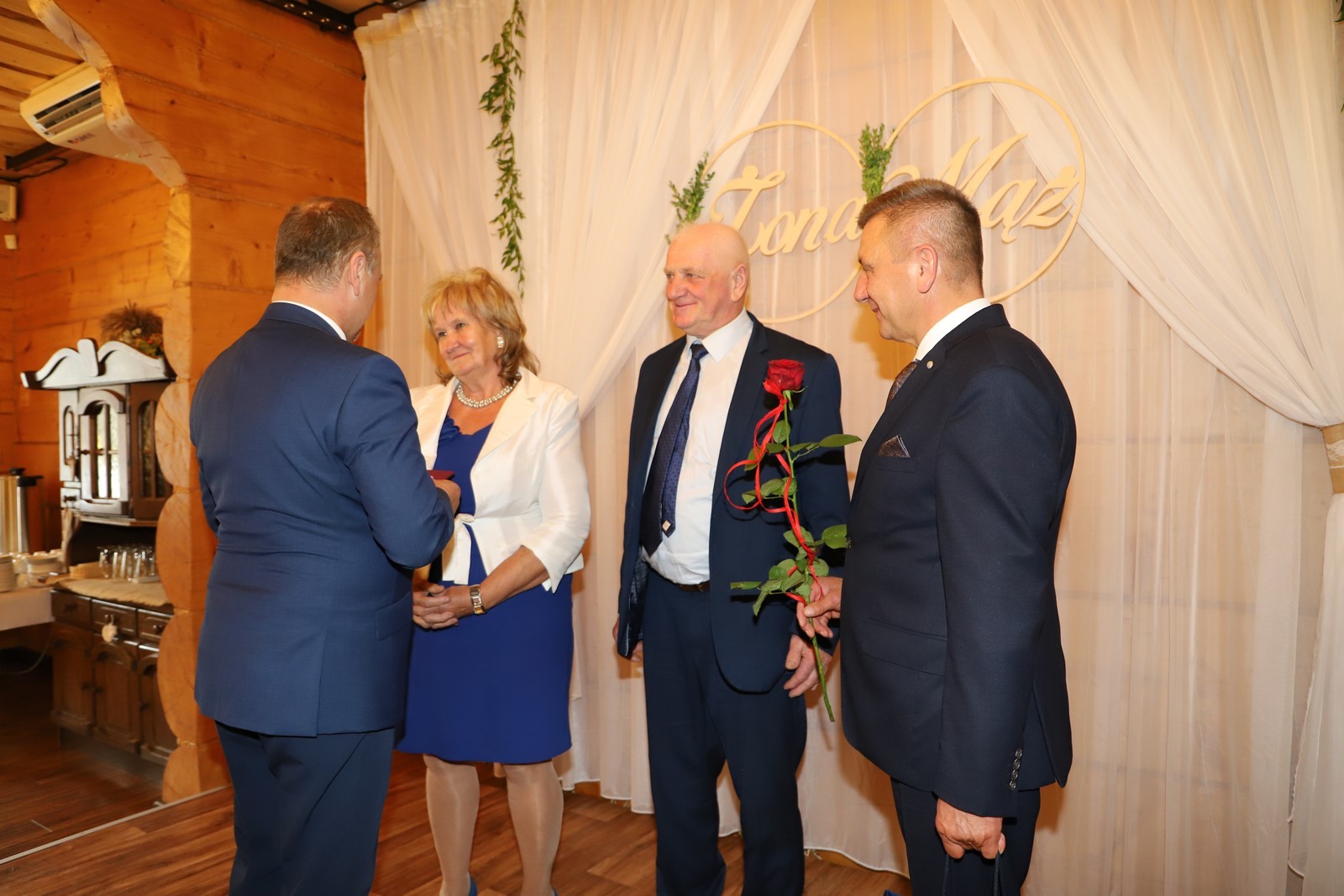 Włodarze Gminy złożyli Małżonkom gratulacje życząc kolejnych lat wspólnego życia w szczęściu, zdrowiu i zadowoleniu.