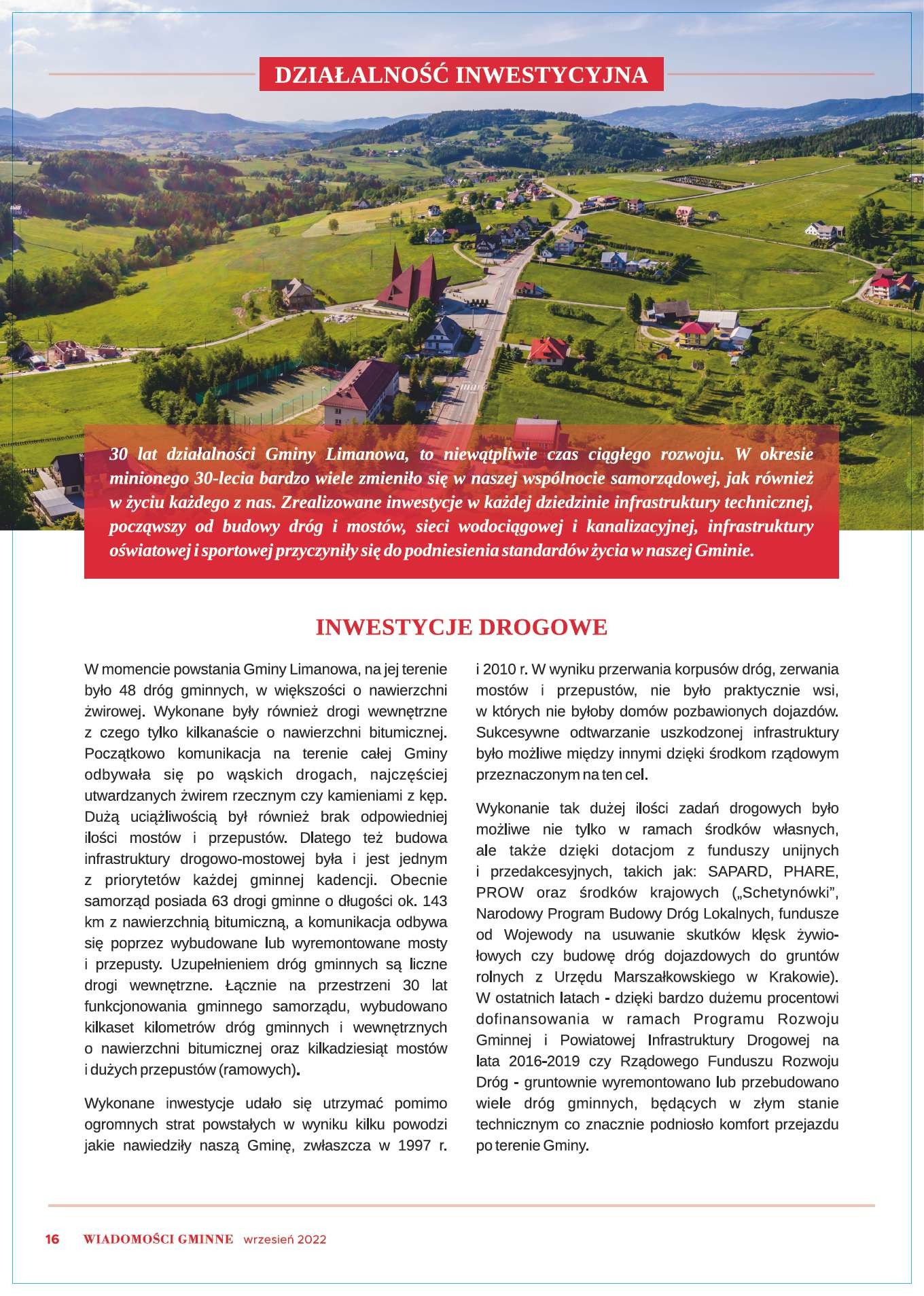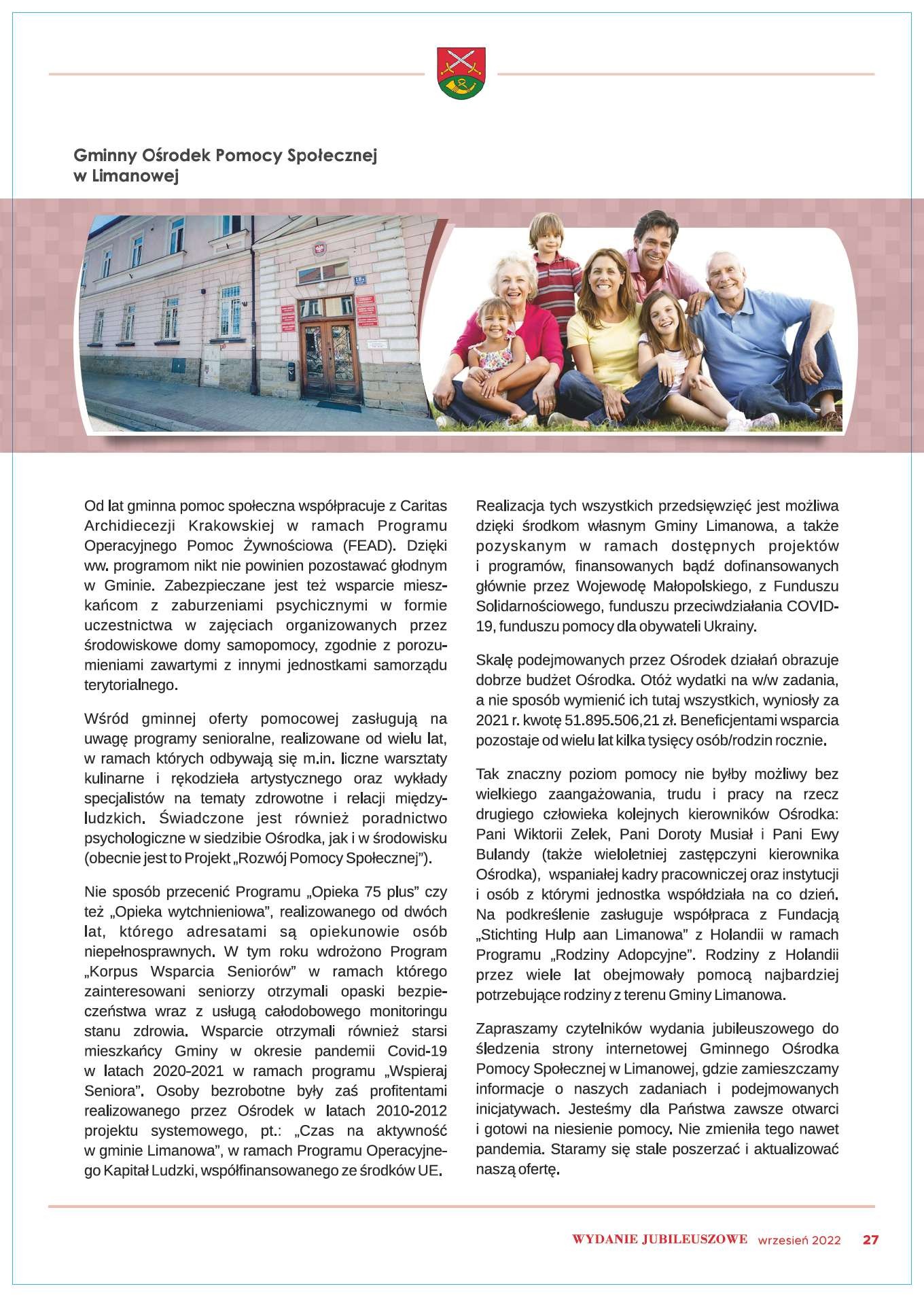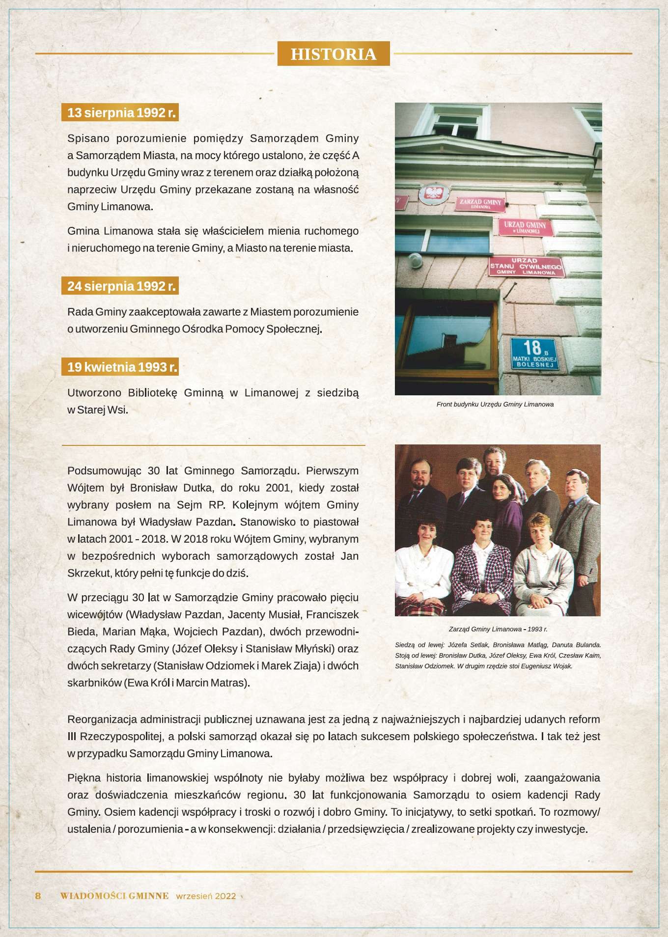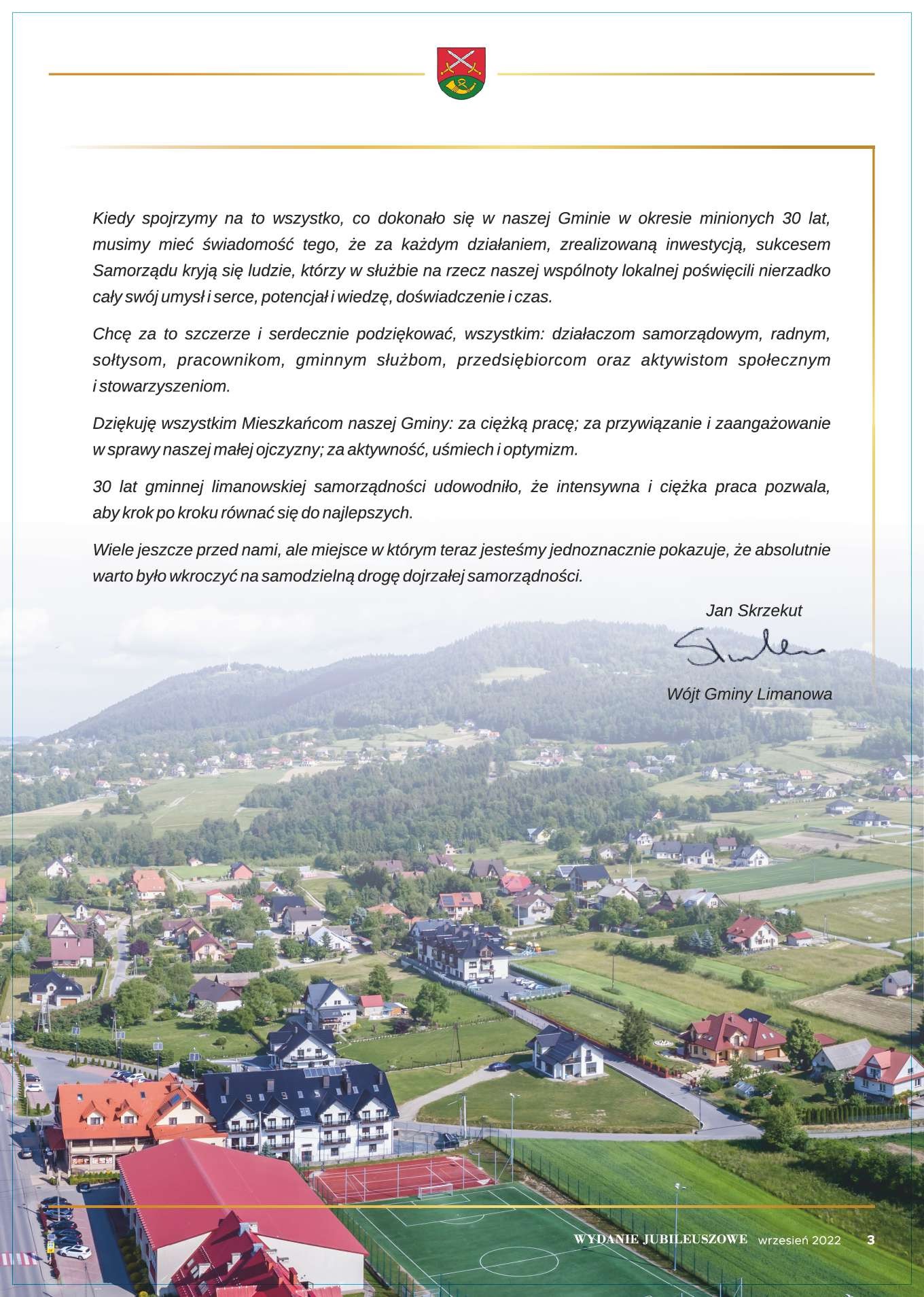 W numerze wydanym z okazji 30-lecia istnienia samorządu gminy Limanowa mogą Państwo przeczytać o najważniejszych m.in.zmianach jakie miały miejsce na przestrzeni lat oraz największych inwestycjach zrealizowanych na terenie gminy Limanowa.