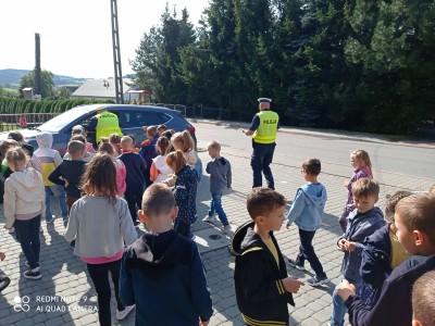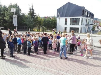 Odbyła się także praktyczna nauka przechodzenia przez jezdnię, a to oczywiście pod bacznym okiem policjantów.