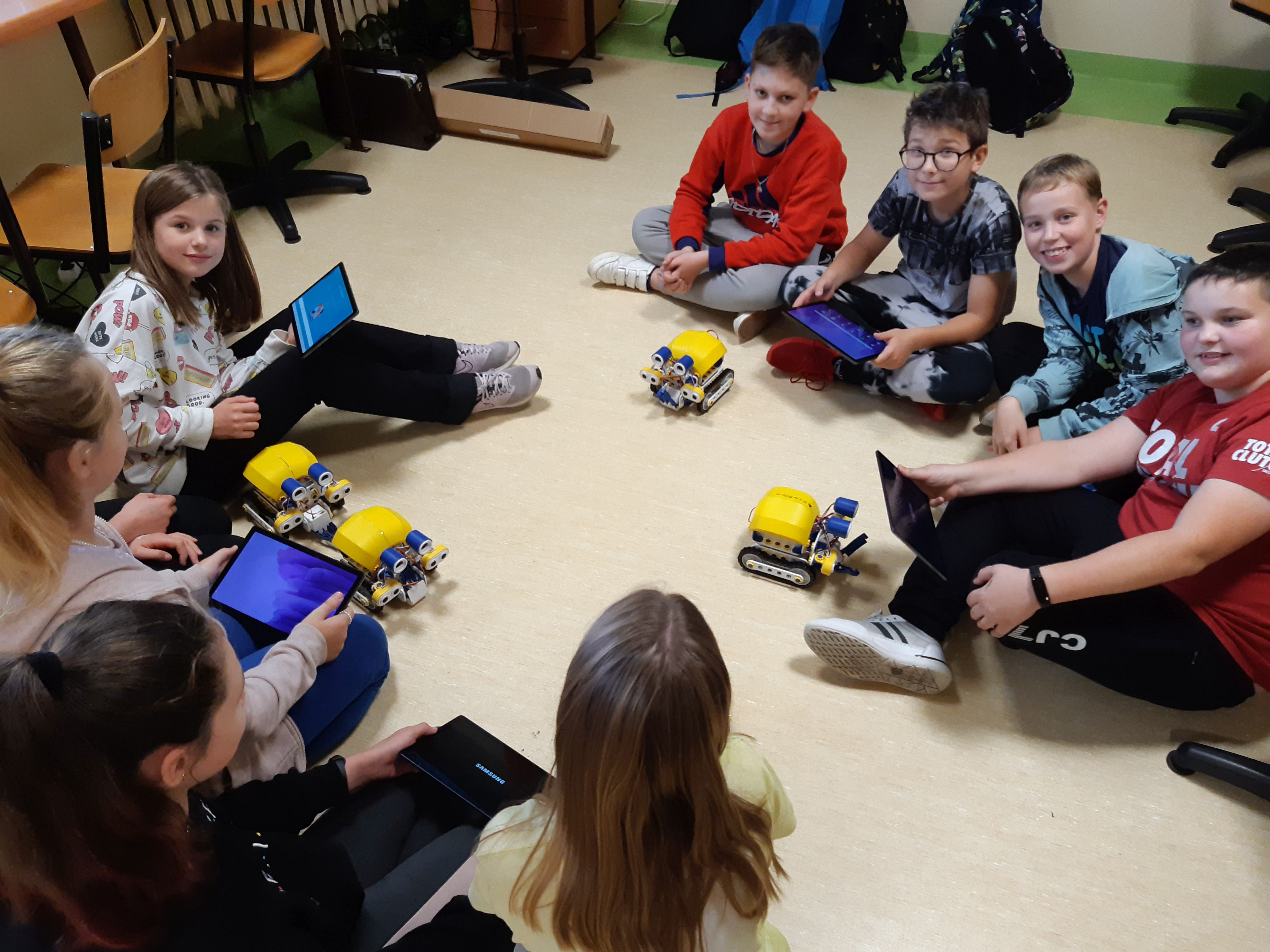 Pierwszoklasiści wykonując zadania związane z programowaniem korzystali z robota edukacyjnego Photon. Zaprogramowany robot poruszał się, wydawał dźwięki i zmieniał kolor czułek. Dzieci podczas zajęć utrwalały znajomość kierunków oraz doskonaliły umiejętność przeliczania, dodawania i odejmowania w zakresie 10. Zadaniem pierwszoklasistów było również odkodowanie jesiennego obrazka.