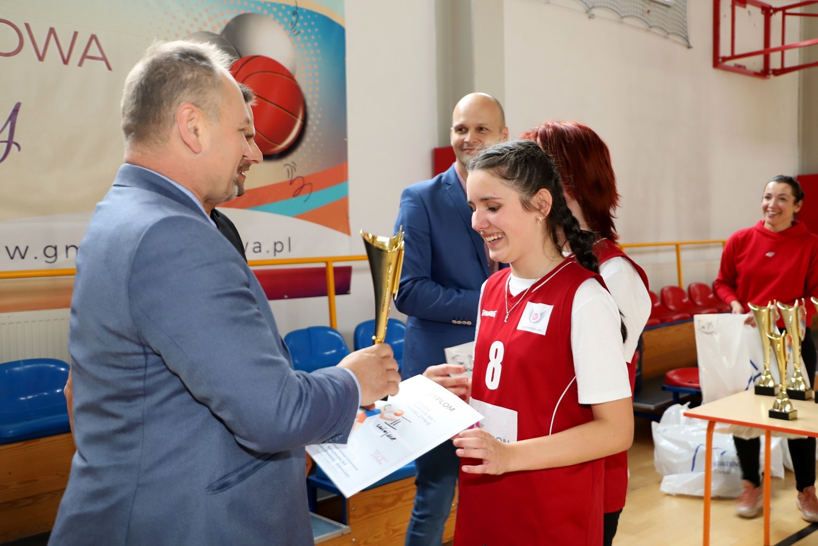 Wręczenie nagród oraz pucharów uczestnikom rozgrywek koszykarskich dokonał